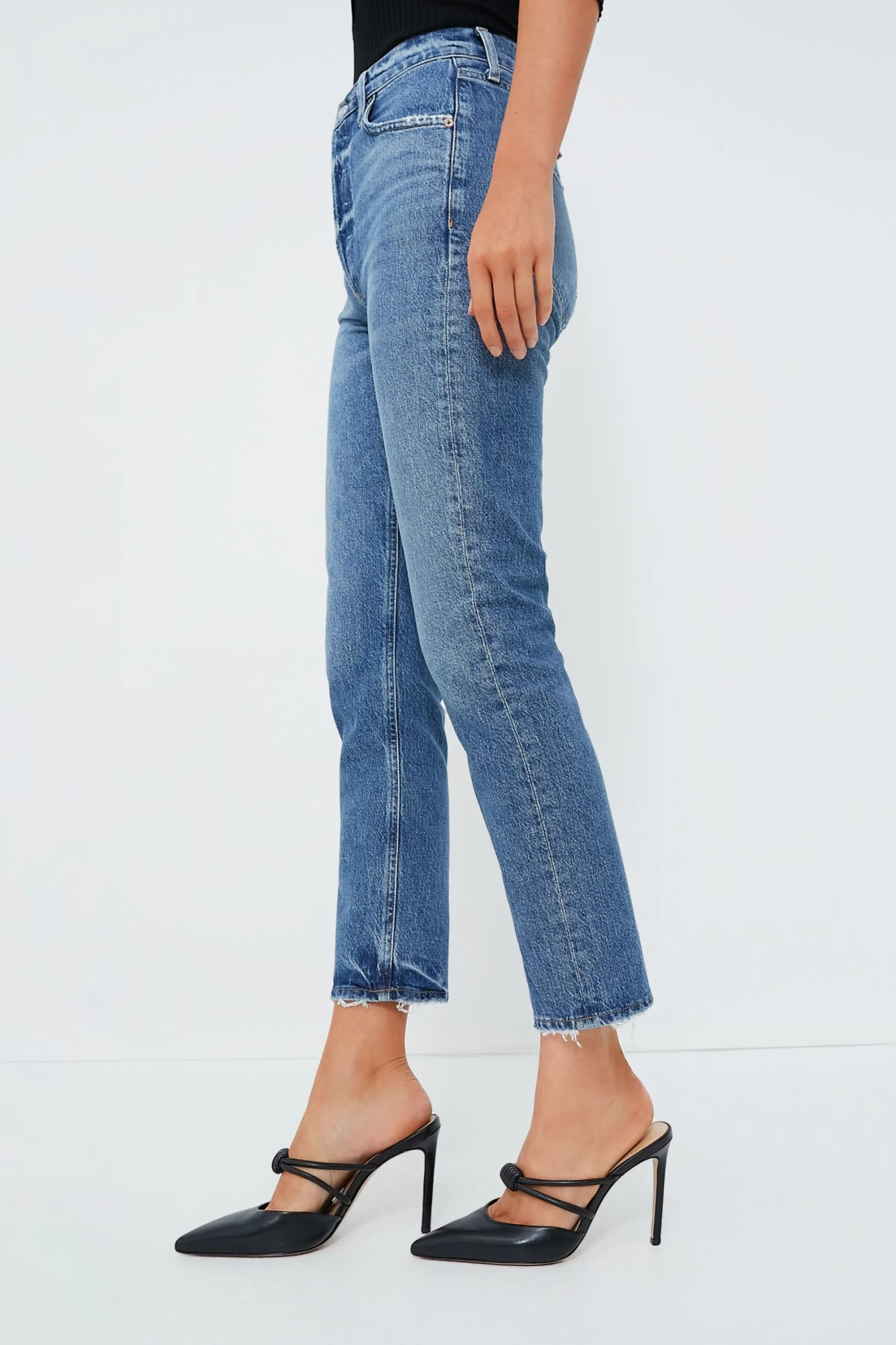With a better-than-vintage aesthetic, Moor Riley Long is an iconic brand favorite updated with a slightly longer inseam. Timeless elements like a classic mid-blue wash and a straight leg get a fresh update with the addition of a button fly and subtle distressing. Made with just a hint of stretch for a comfortable fit from day to night, style these go-to bottoms with a blazer in the office, an easy tee on days off, or a sleek blouse for evenings out on the town.
