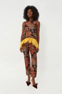 The Arcturus Saturday Night Pants are made for party princesses. In a stunning print and stretchy fabrication, these chic bottoms sit comfortably on the hips and the bootcut silhouette is super flattering on legs of all ages. Style with the matching Arcturus La Scala Top with Feathers for a statement look that is sure to turn heads, or pair with a crisp white blouse for a slightly more muted look.