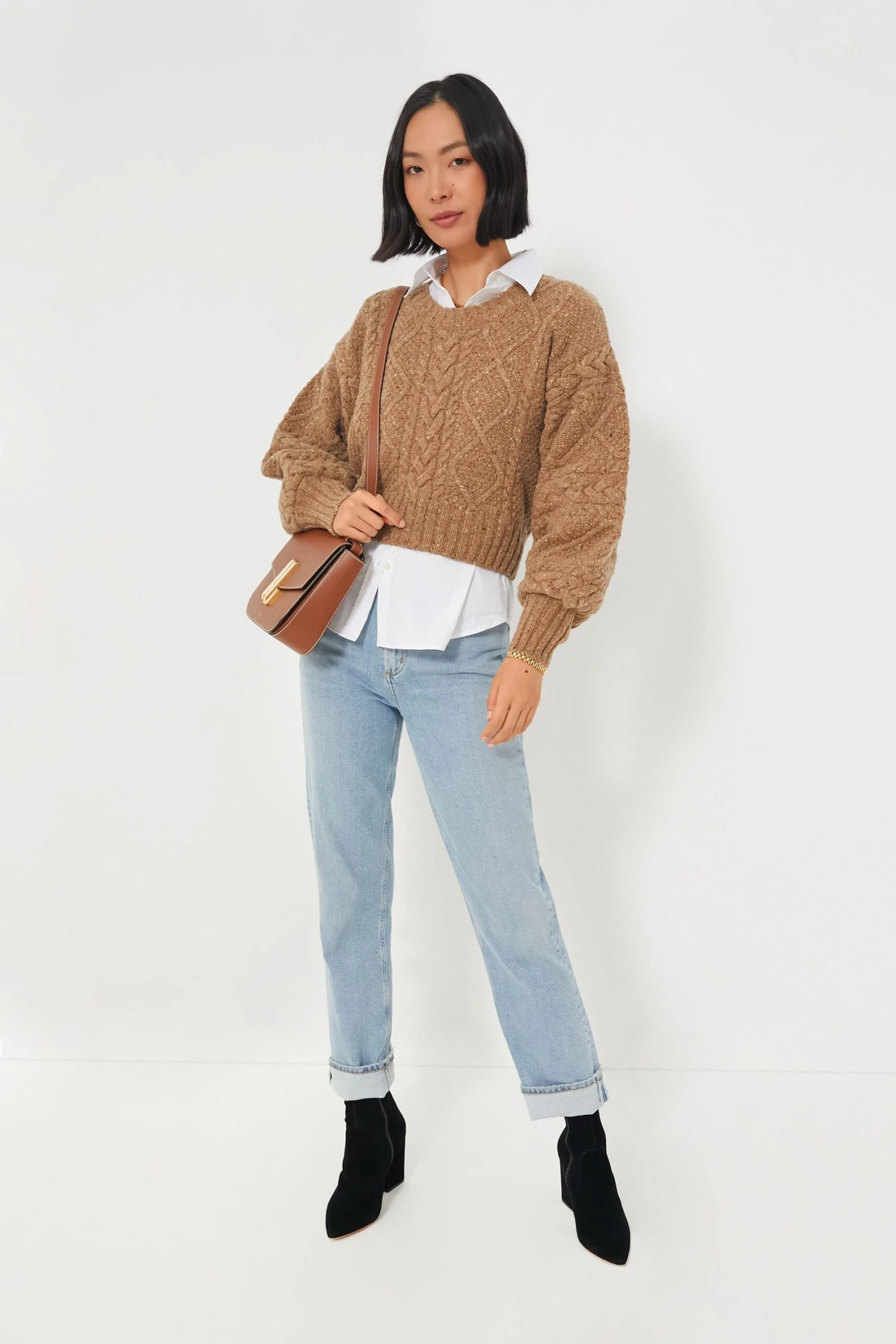 The Biscuit Cable Knit Sweater has us dreaming of crisp mornings and pumpkin spice lattes. This wonderfully relaxed crewneck features dropped shoulders, long bishop sleeves, and charming ribbed detailing throughout. Complete with a cropped hem, this piece is perfect to layer over your favorite slip dresses and button downs. Style this versatile silhouette for the office, weekday appointments, and weekend relaxation for a cozy yet chic look.