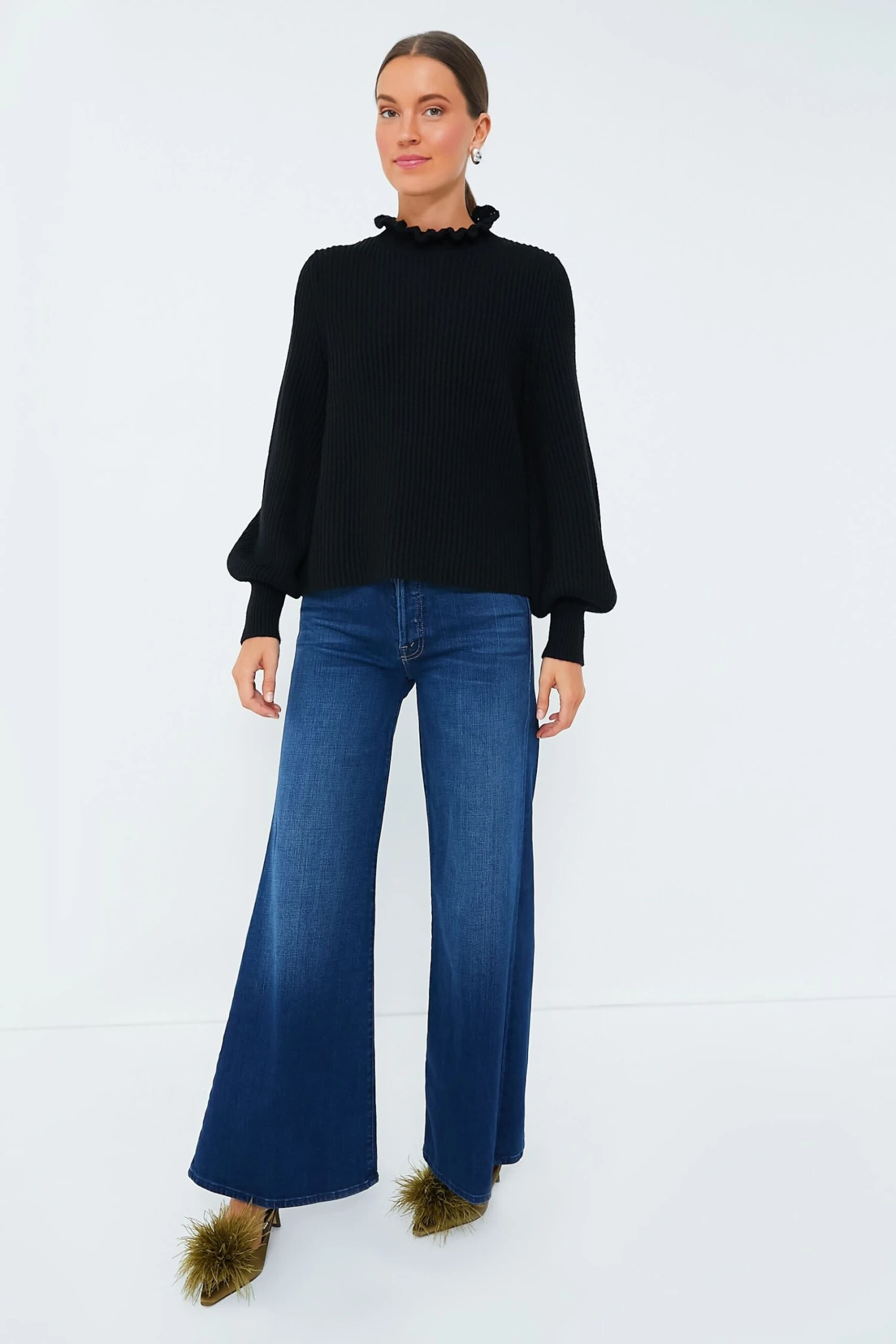 Love your classic black knit but want a fresh update? Enter the Delphine Sweater — a cozy, slightly cropped number with a ruffled neckline, bishop sleeves, and a soft feel. Feminine yet unfussy, this style looks perfectly polished with paired with denim and flats, trousers and loafers, or a midi skirt and boots. We are wearing this everywhere, day to night from school drop offs to book clubs with our besties to casual date nights for an easy yet elegant look.
