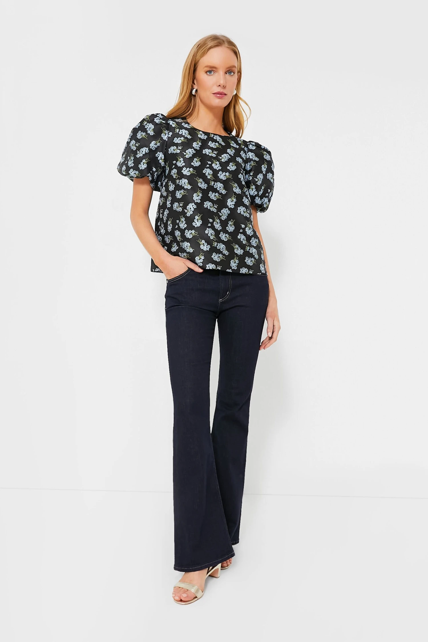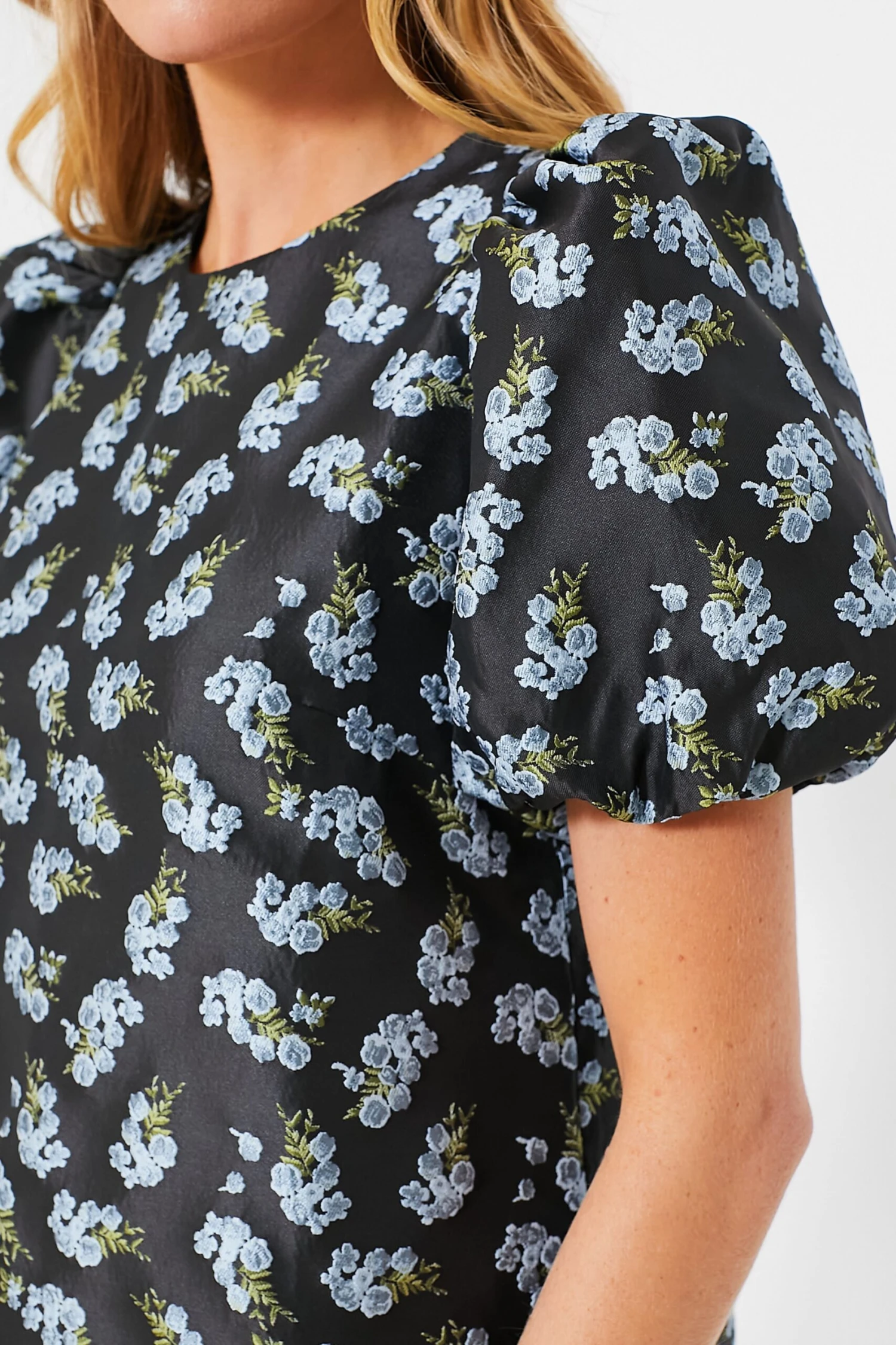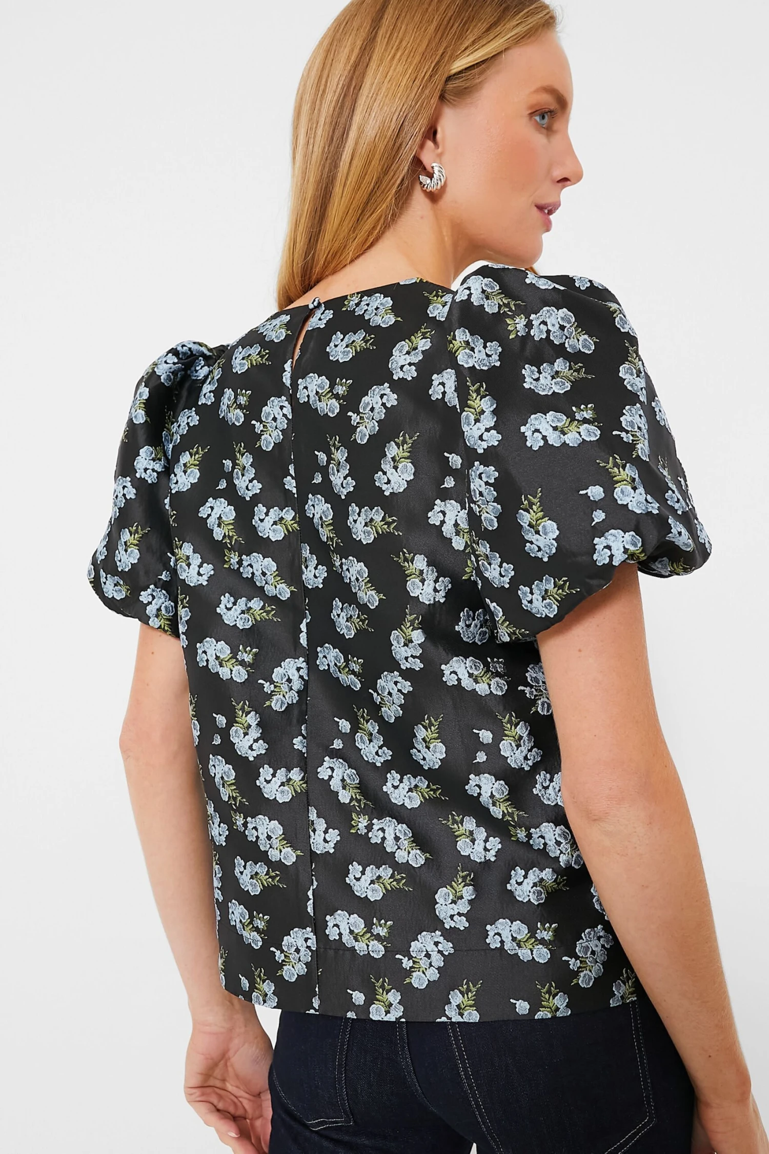 A classic silhouette with scaled-up details, the Black Heirloom Jacquard Lyla Blouse is oh-so-chic. Designed with bubble sleeves for volume and a textured jacquard fabric that adds dimension and makes for a polished finish, this top is a guaranteed wardrobe winner. Classic-with-a-twist, just add denim and heels for an effortlessly glamorous party look!