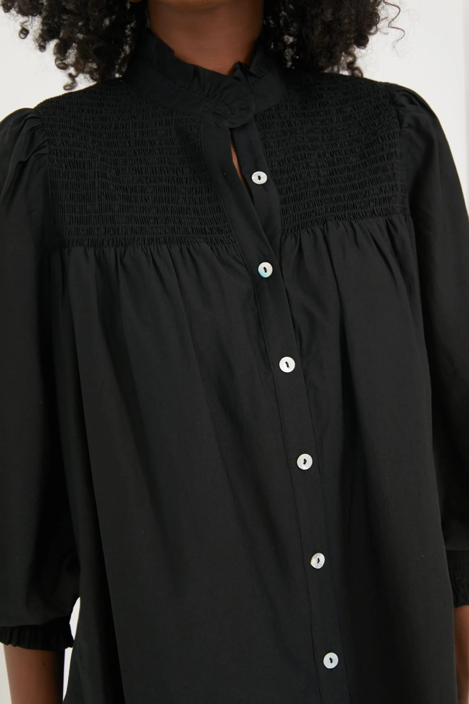 An effortless, lightweight top that keeps things polished and updated at the same time? Count us in! The Black Jaia Smocked Blouse checks all the boxes when it comes to closet staples. Designed with a classic button front placket, it’s the smocking details at the neckline and cuffs that make this style stand out from the rest. For days when you don’t know what to wear and crave a put-together look, pair this timeless silhouette with denim of any color and heels for a look that’ll feel good and stand the test of time.