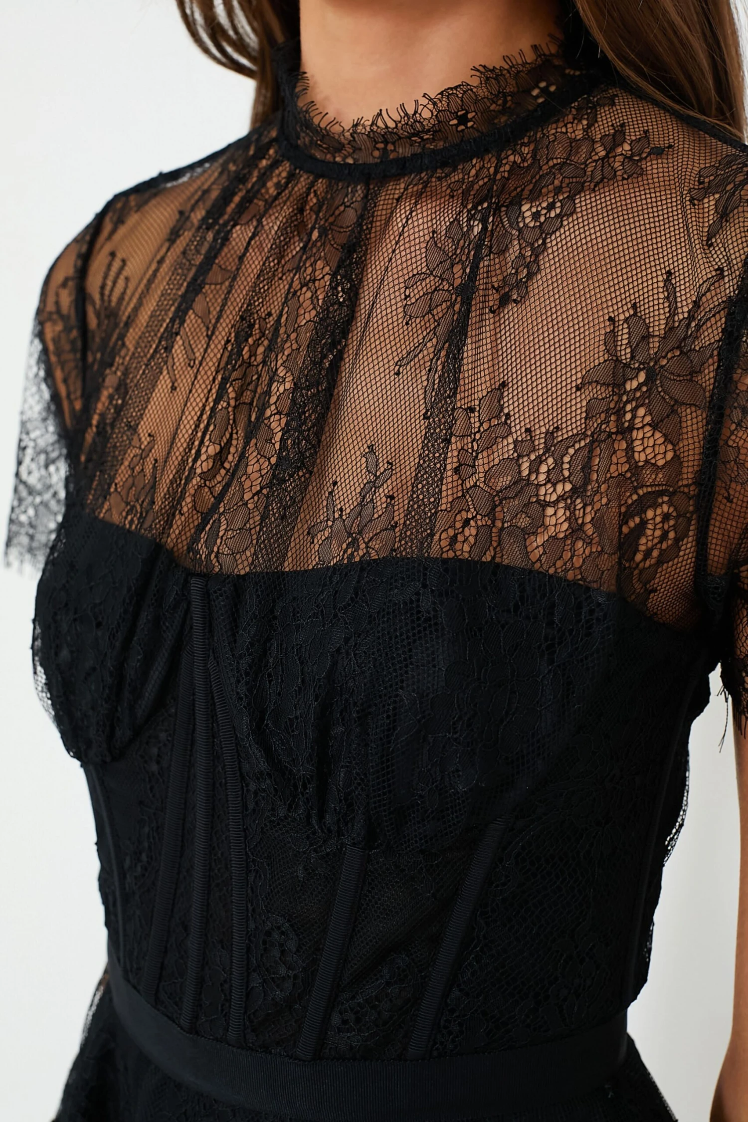 - Bustier style with lingerie lace