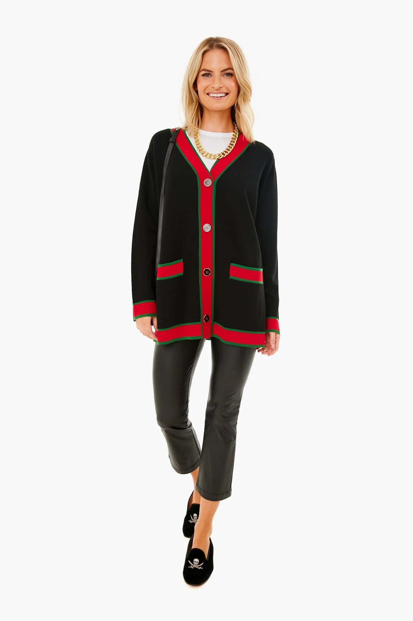 A chic update to the effortless âI stole my grandfatherâs cardiganâ look, the Lauren combines a cozy oversized fit with feminine tailoring in a not-too-light, but not-too-heavy wool for the ideal layering piece. Detailed with gold crest buttons, two-tone contrasting colors and deep front pockets, this is the perfect combination of relaxed yet put-together.