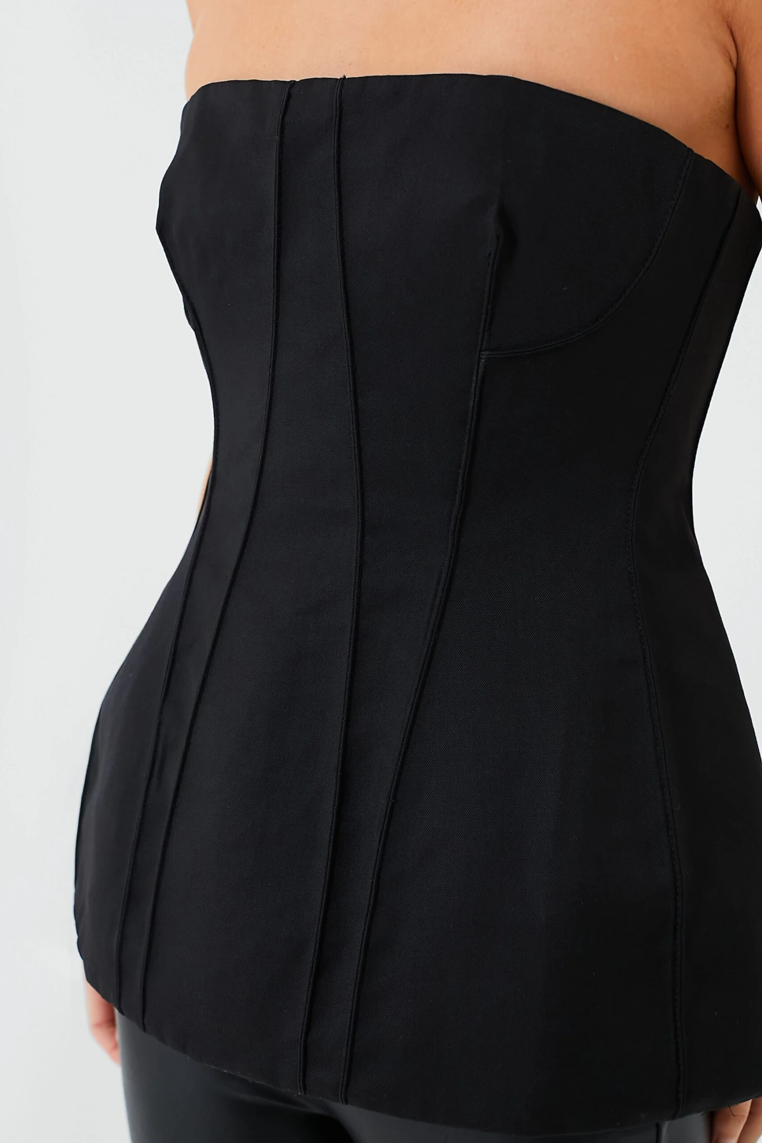 Sexy and sophisticated, the Black Parker Sleeveless Bustier Top is perfect for making a lasting impression. Made from wool-blend twill, it’s meticulously cut and boned for structure and flares out over the hips to form an exaggerated, sculptural silhouette. Pair with denim and flats for a polished yet casual look, or throw it on over a skirt and statement earrings for a feminine moment.