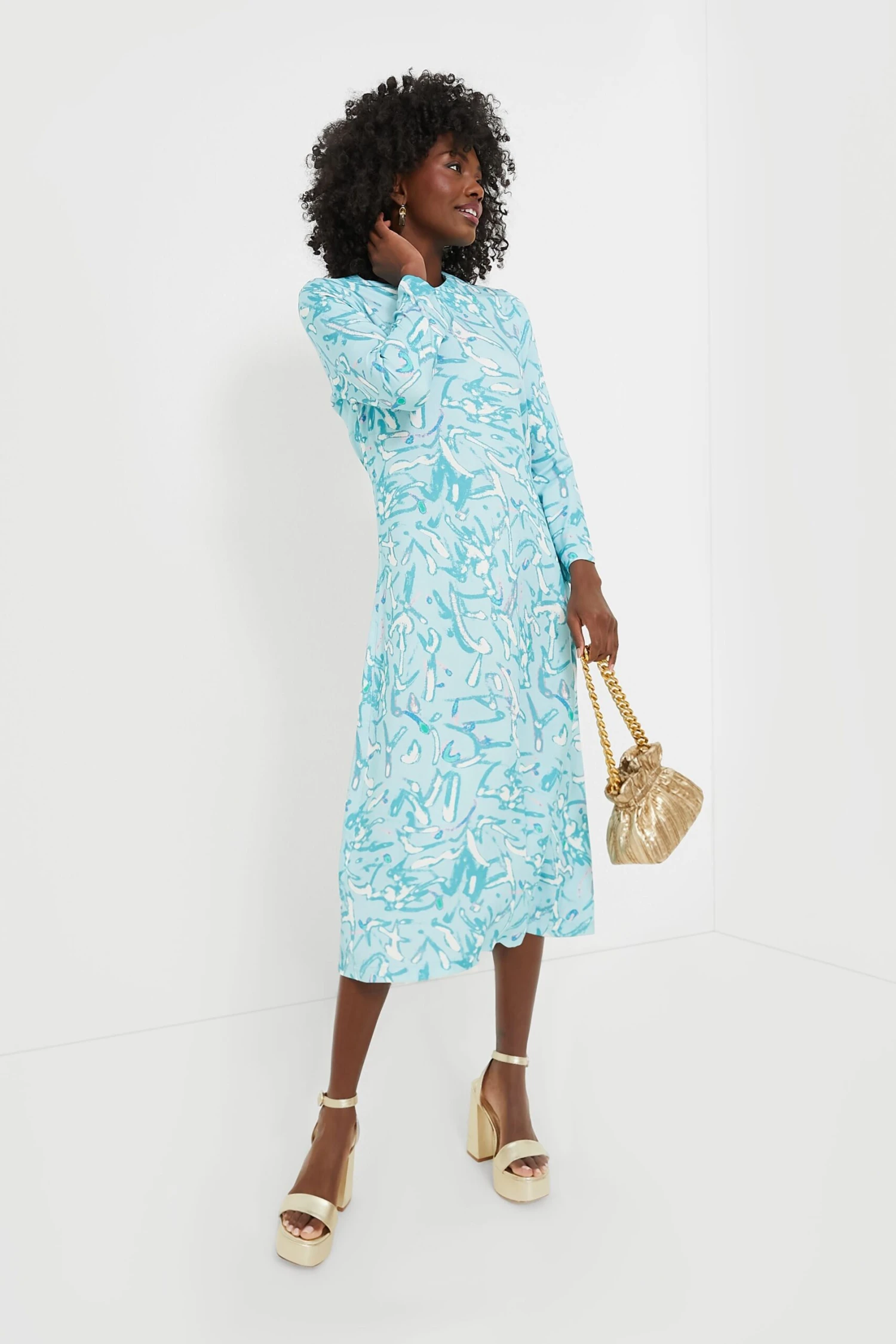 The Blue Abstract Hattie Dress is an easy yet sophisticated silhouette that will fit the dress code for countless occasions. With an abstract pattern, a relaxed silhouette, and ultra-soft fabric, you will not want to take this comfortable (and classy) midi off. Pair with heels and statement earrings or simple ballet flats and a clutch.