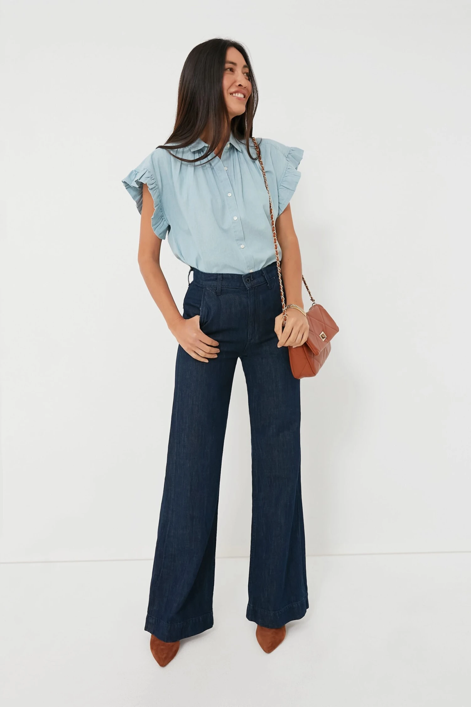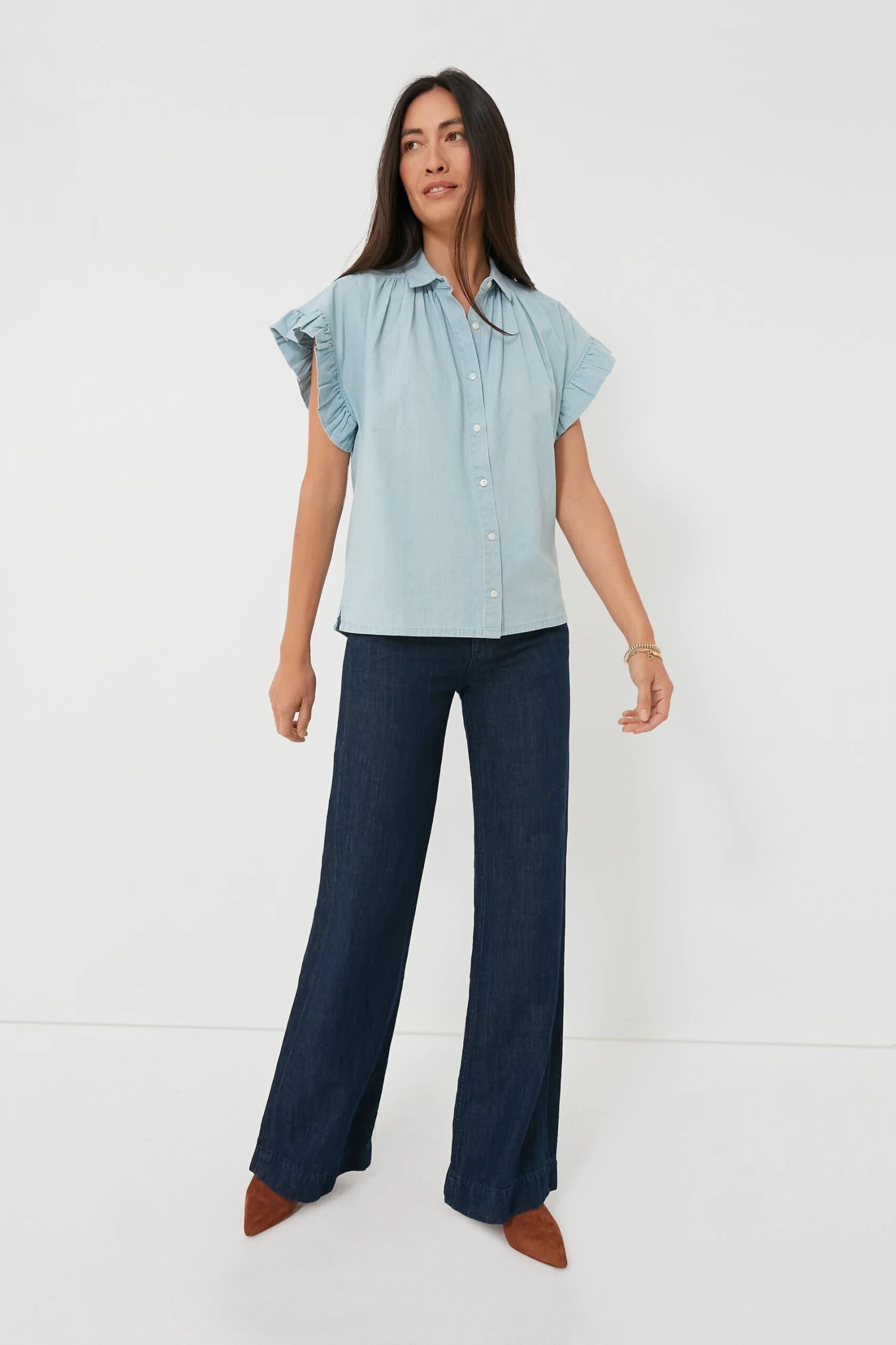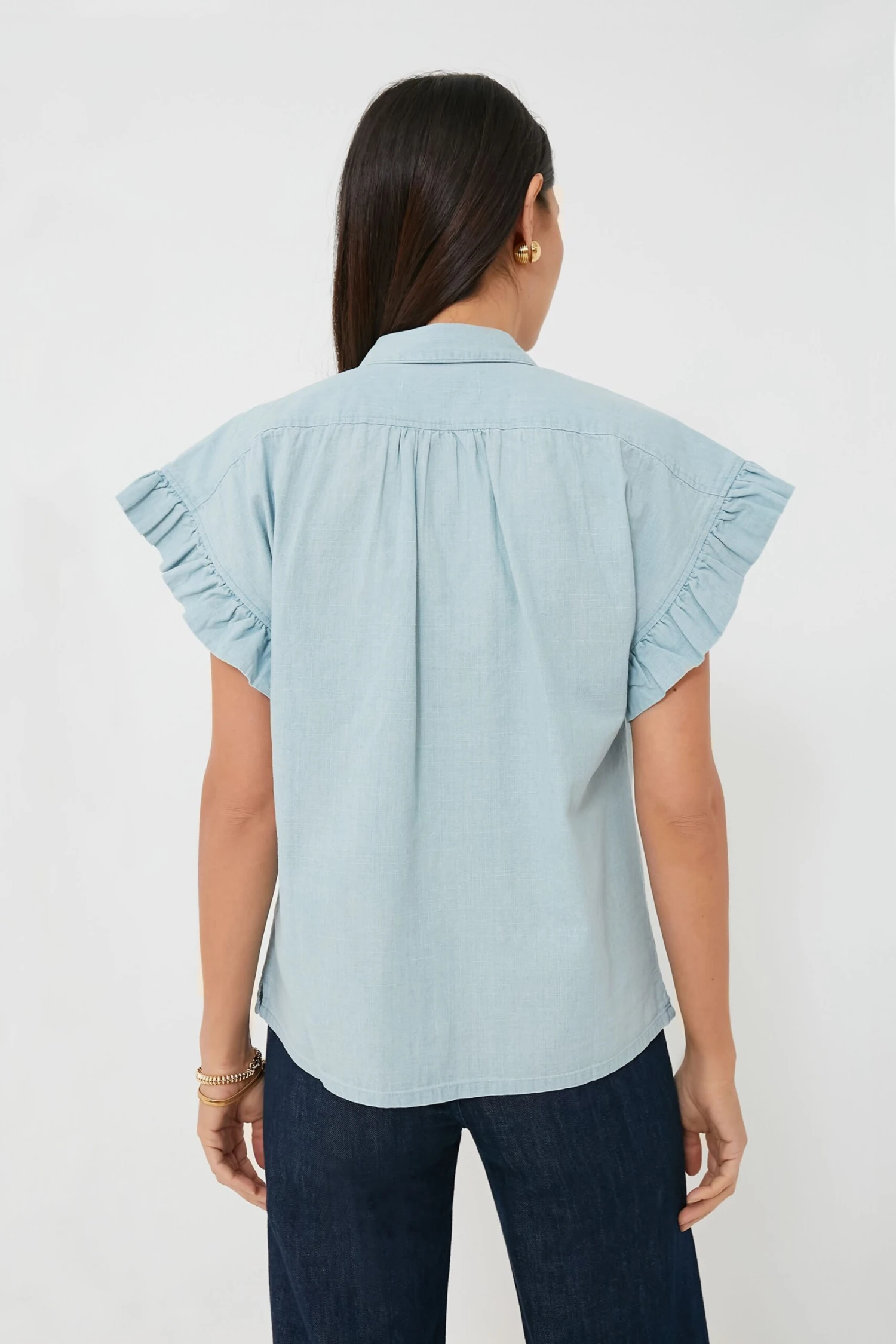 The Chambray Marianne B Shirt is just the breathable, transition piece you need in your wardrobe. Adorned with sweet antique white buttons and feminine ruffles, this top is wrinkle-resistant, easy to mix and match, and effortlessly cool. Style this soft silhouette with classic denim and crisp white sneakers for watching the kids at soccer practice, or dress it up with a skirt, a blazer, and heels for an elegant ensemble.