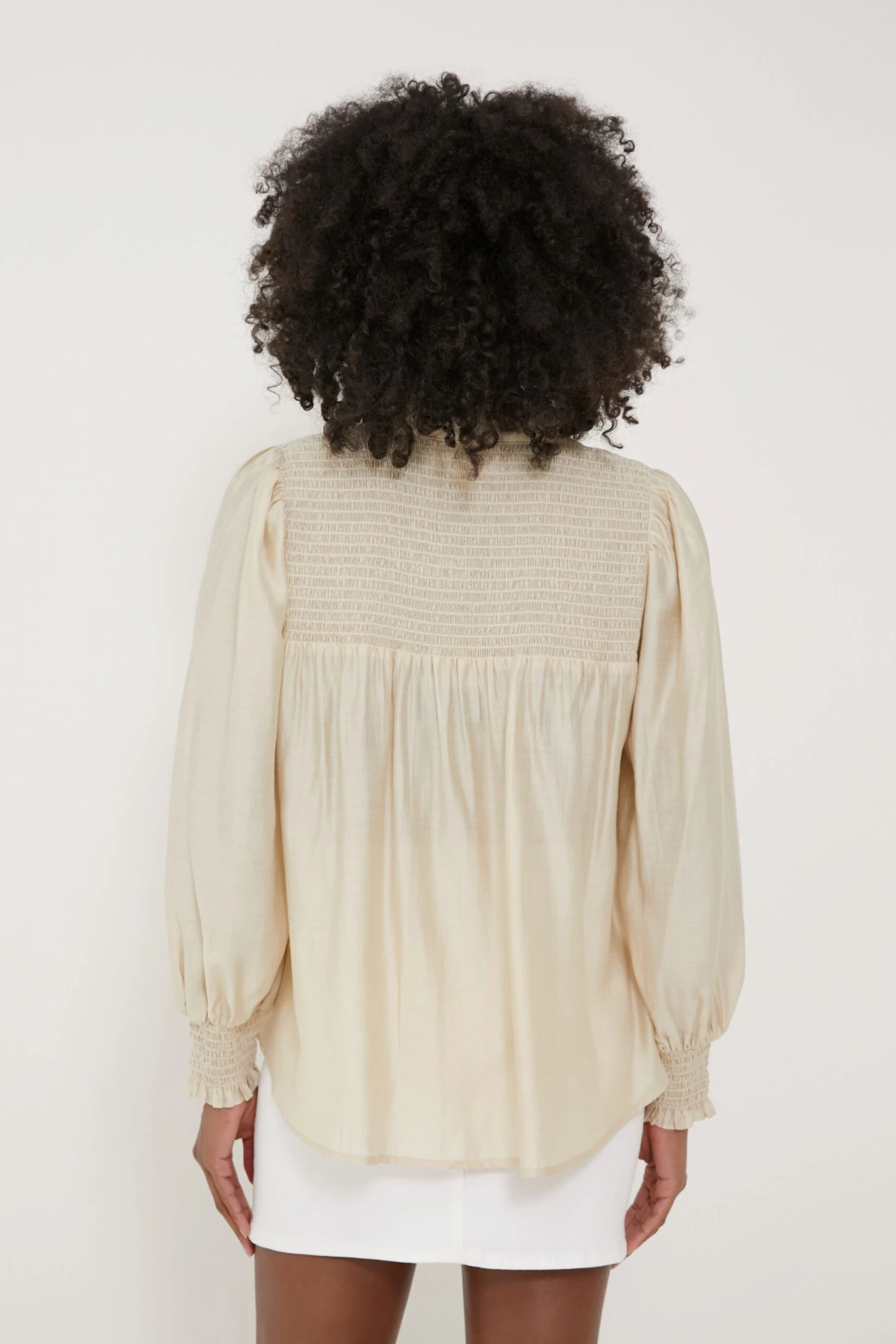 - Smocking on neckline and cuffs