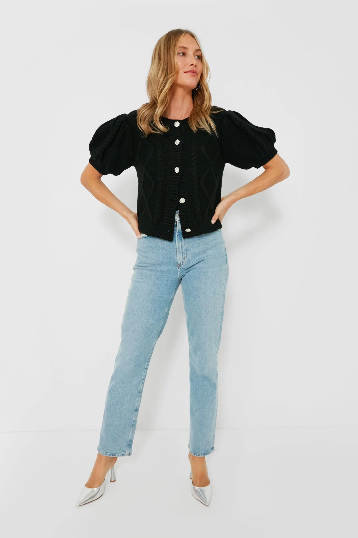 Meet the sweater that will be on repeat this season! As versatile as it is chic, the Crystal Button Black Victoria Cardigan will take you from desk to dinner, and everywhere in between. We’re pairing with our go-to jeans and metallic heels for an updated take on date night dressing!Â