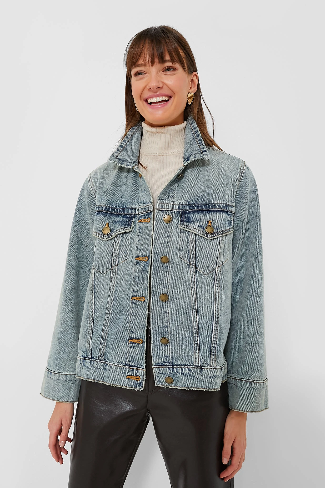 The Slouchy Jean Jacket in Derby Wash is the kind of piece you’ll hold onto forever. This vintage-inspired silhouette features details borrowed from classic workwear styles, including oversized patch pockets, metal buttons, and double-needle stitching throughout. Designed with a relaxed, boxy shape, this chic piece is perfect for layering over all your favorite ensembles. Wear yours with a tee and flats for a classic look you’re sure to love.Â
