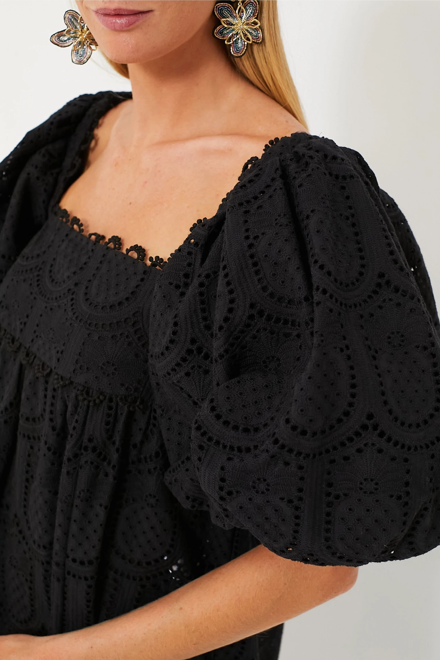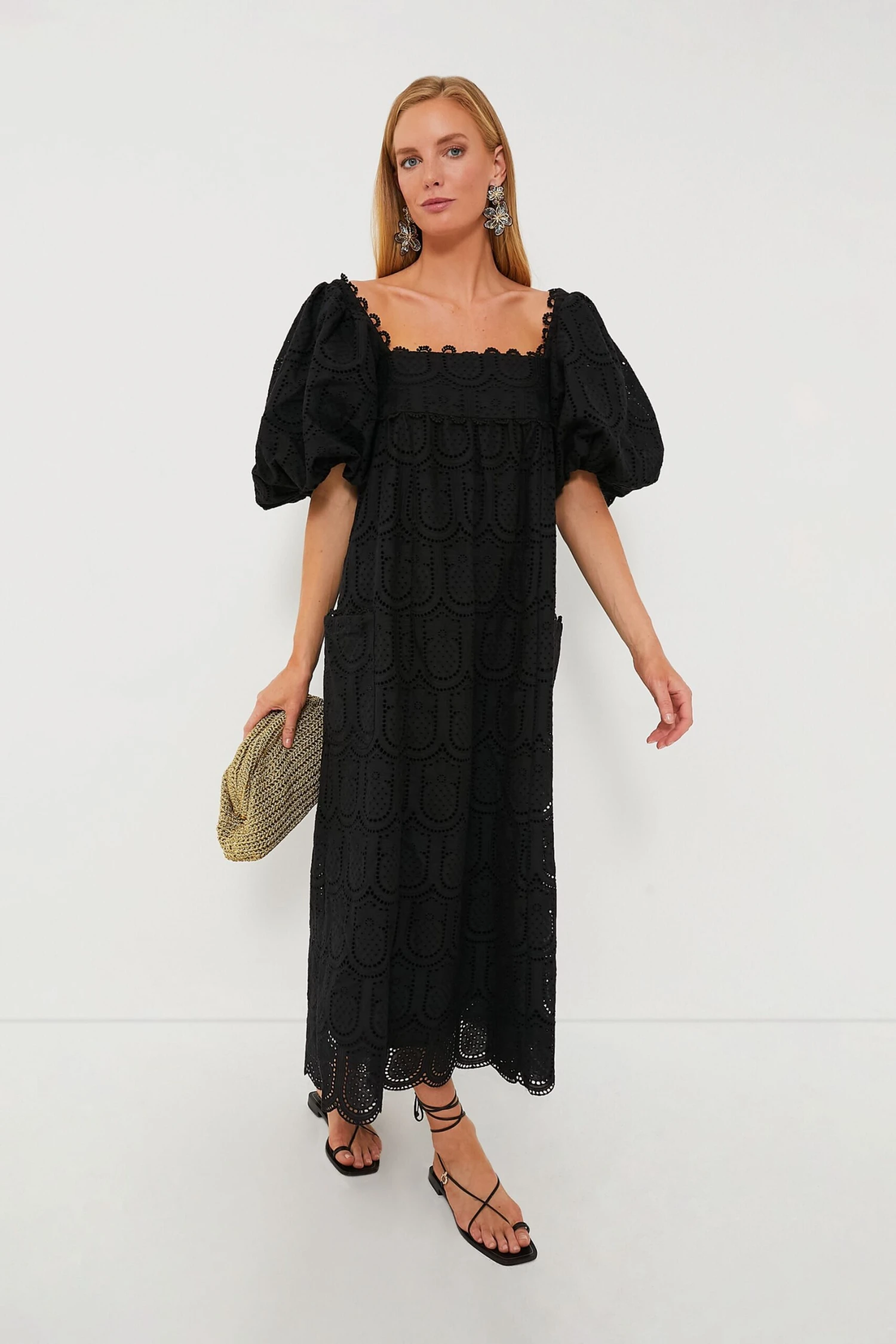 Look lovely as ever in the Black Pineapple Cotton Eyelet Dress. Square neckline and balloon sleeves add femme and flirty flair while the side pockets add functionality to this breezy maxi. Effortlessly easy to style, throw on sandals and sunnies for an easy daytime look or dress up with heels and statement earrings for more formal affairs.