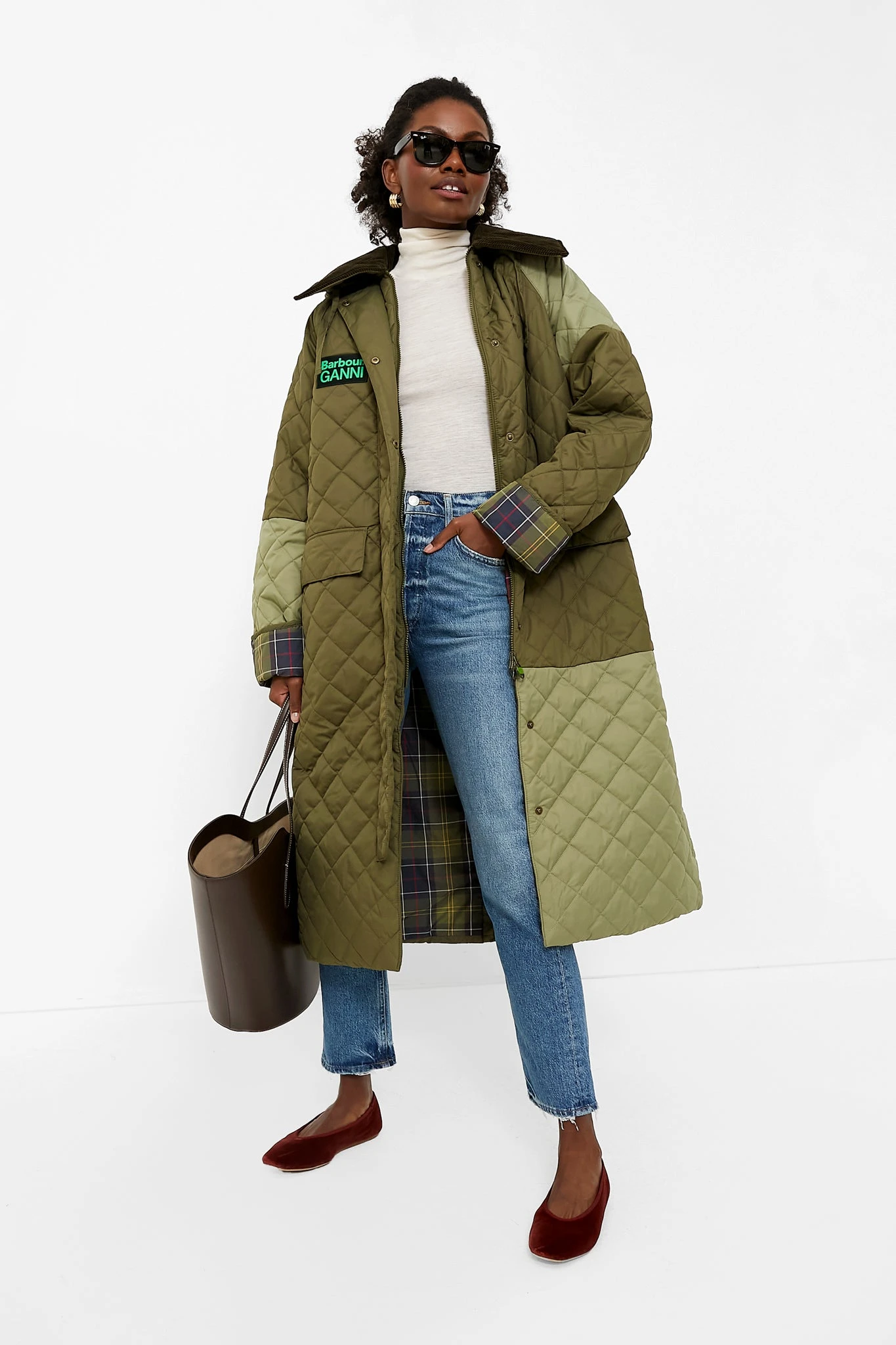 This bold and stylish coat is a perfect blend of Barbour’s traditional style and Ganni’s playful twists. The Fern Light Moss Barbour Ganni Quilted Burghley Jacket includes patchwork quilting for a longline look and a removable hood. The classic silhouette is upgraded with an oversized collar, exaggerated cuffs, and a color block design to help you look cool even when it’s cold out. Pair with your go-to denim and a tote for an elevated everyday look.
