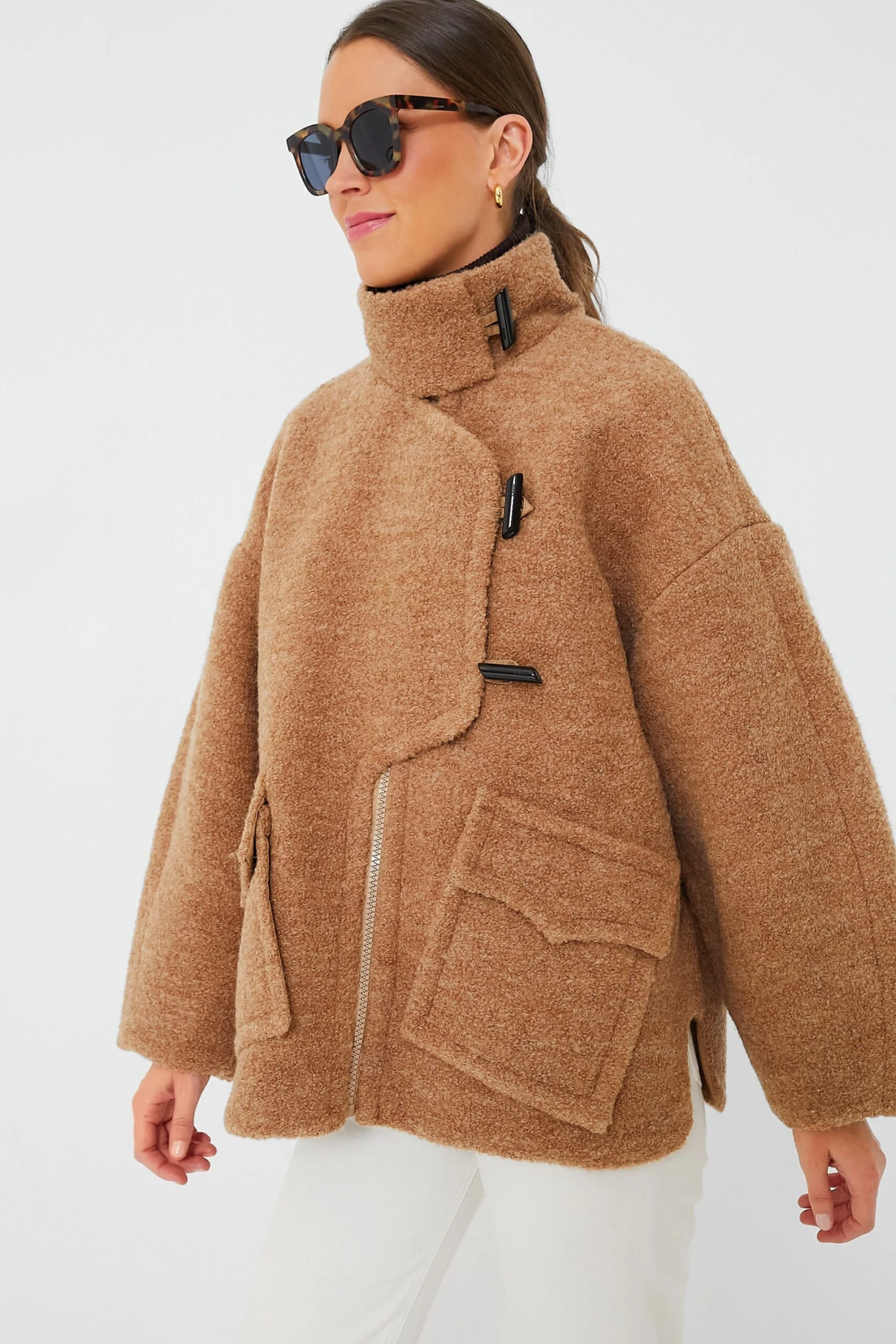 - Front zip with toggle closure