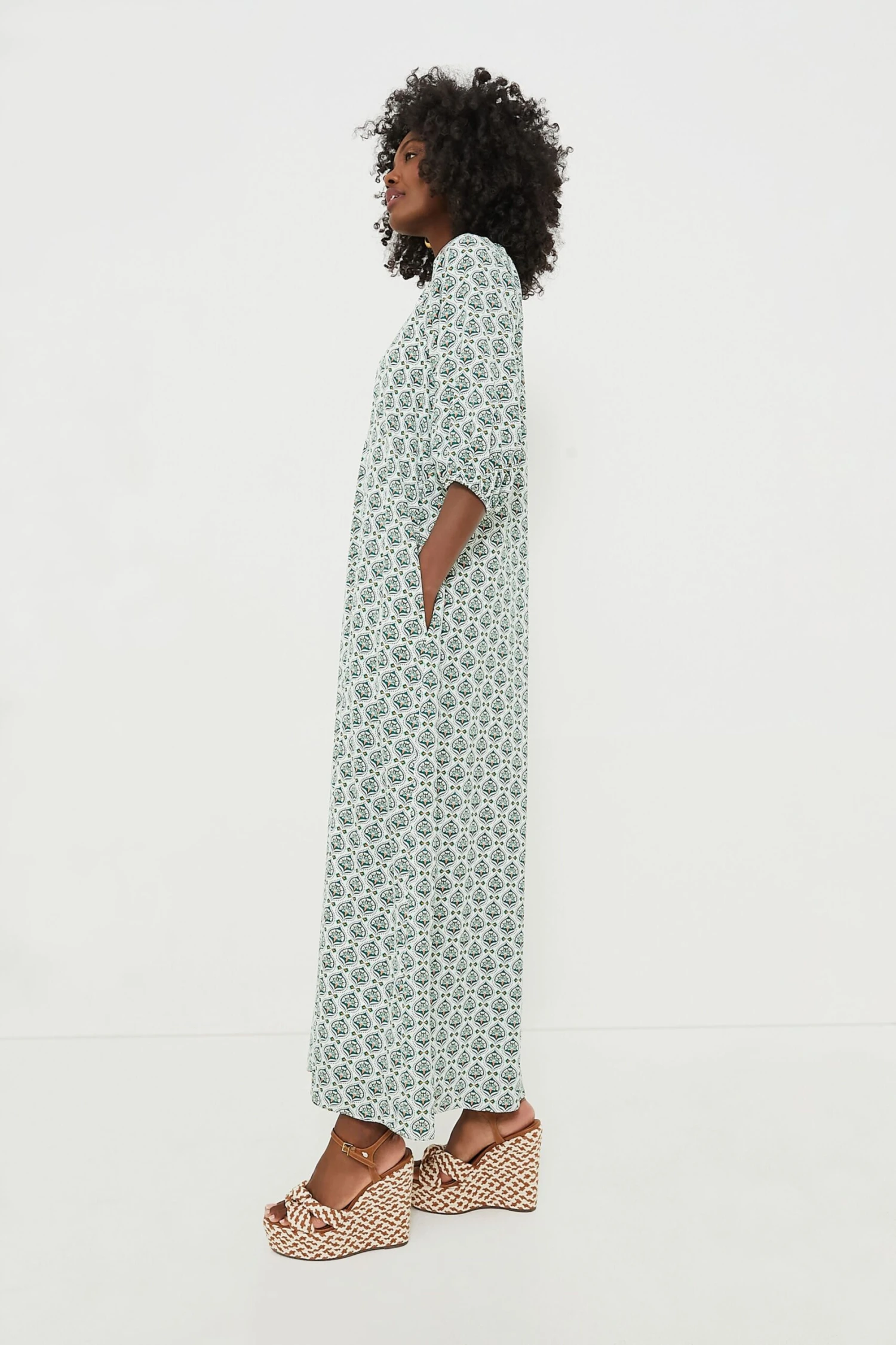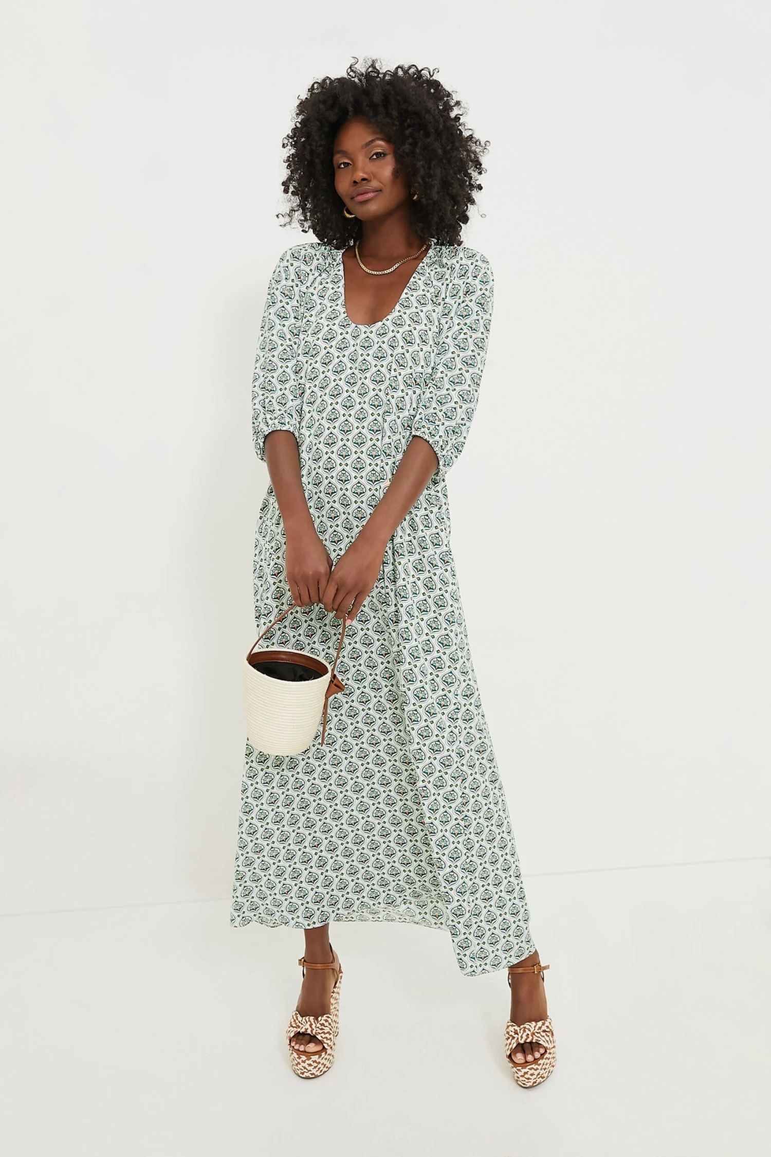 Effortless and romantic, the Green Leaves Laurel Maxi Dress is an all-occasion dress that is both elevated and comfortable. The scoop neckline, short puff sleeves, and relaxed silhouette are among our favorite details, and the cherry on top is the intricate pattern displayed on the silky fabric. Put on a statement necklace and your favorite heels for an elegant ensemble.
