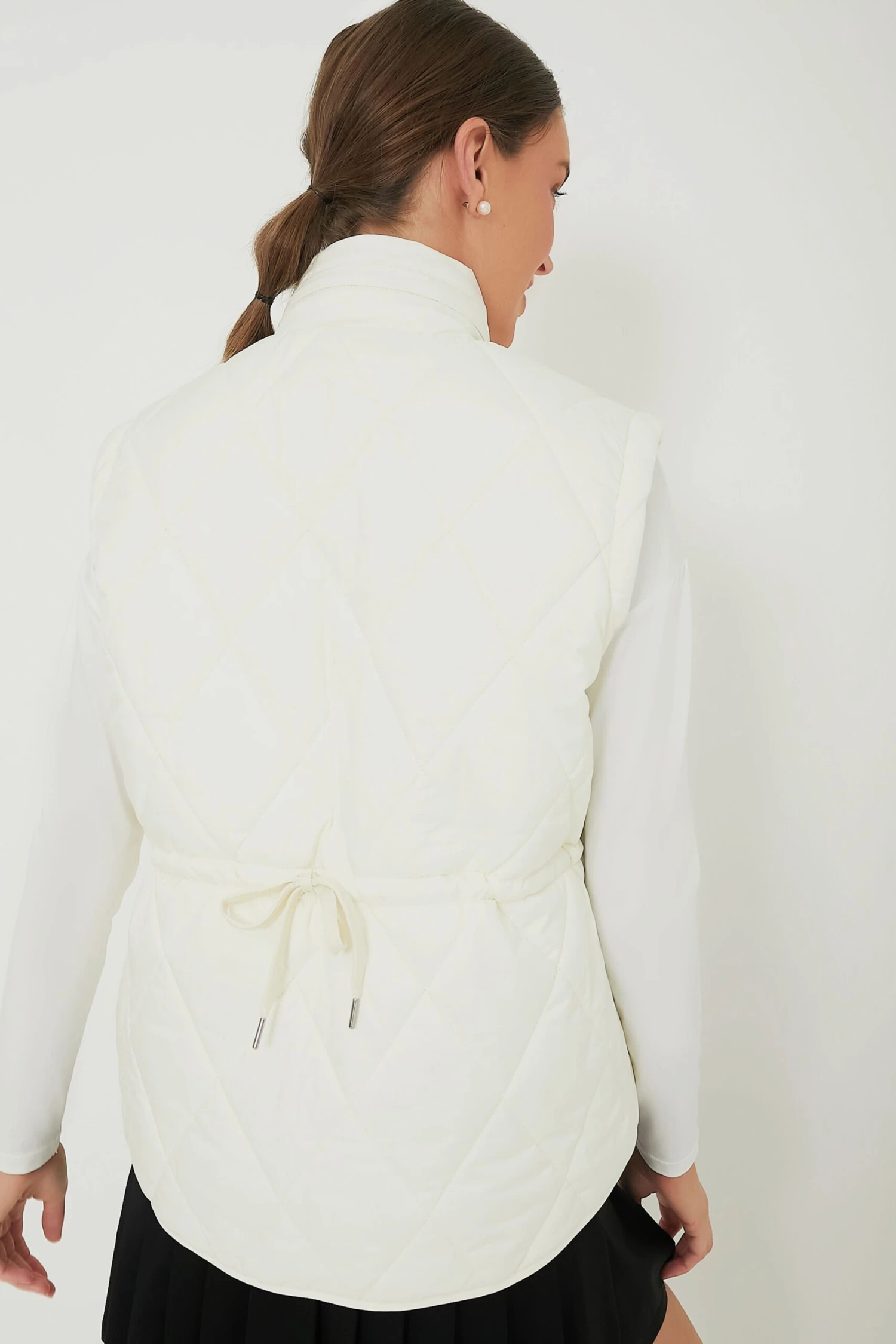 The perfect outfit topper to take you from a warm-up run to a coffee run, the Ivory Quilted Packable Meredith Vest was designed with all activities in mind. This essential layering piece features a breathable and water resistant fabric, invisible zip pockets, and a gathered back with a drawcord tie to keep you warm and in-style when the weather gets unpredictable (you know the days where it’s frigid in the morning and you’re sweating by noon). Our favorite detail might be the self packable bag that allows you to pack this style up and attach it to your golf or tennis bag for easy carrying. With a subtle printed colorway that pairs nicely with everything, you’ll be grabbing for this day after day, season after season.