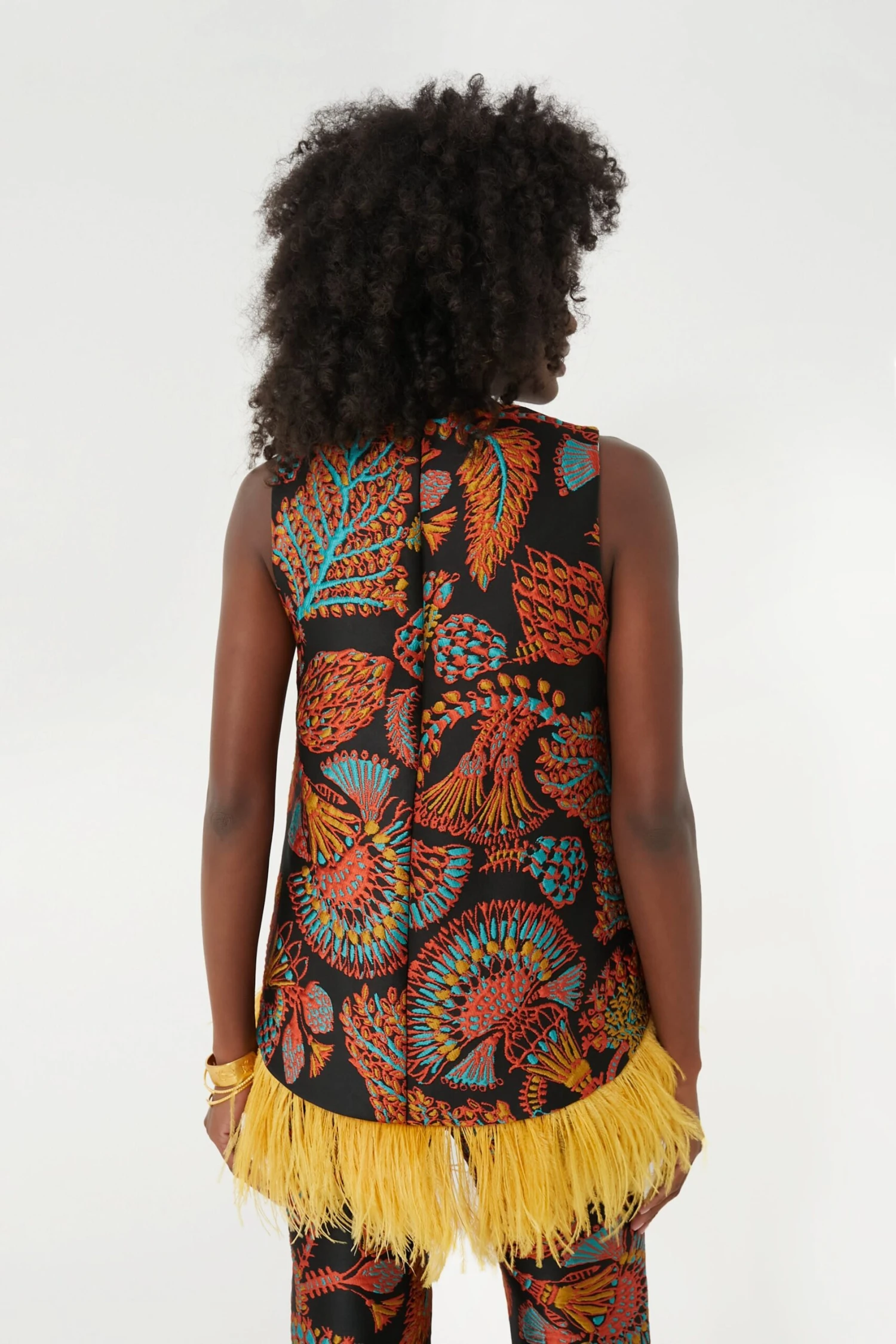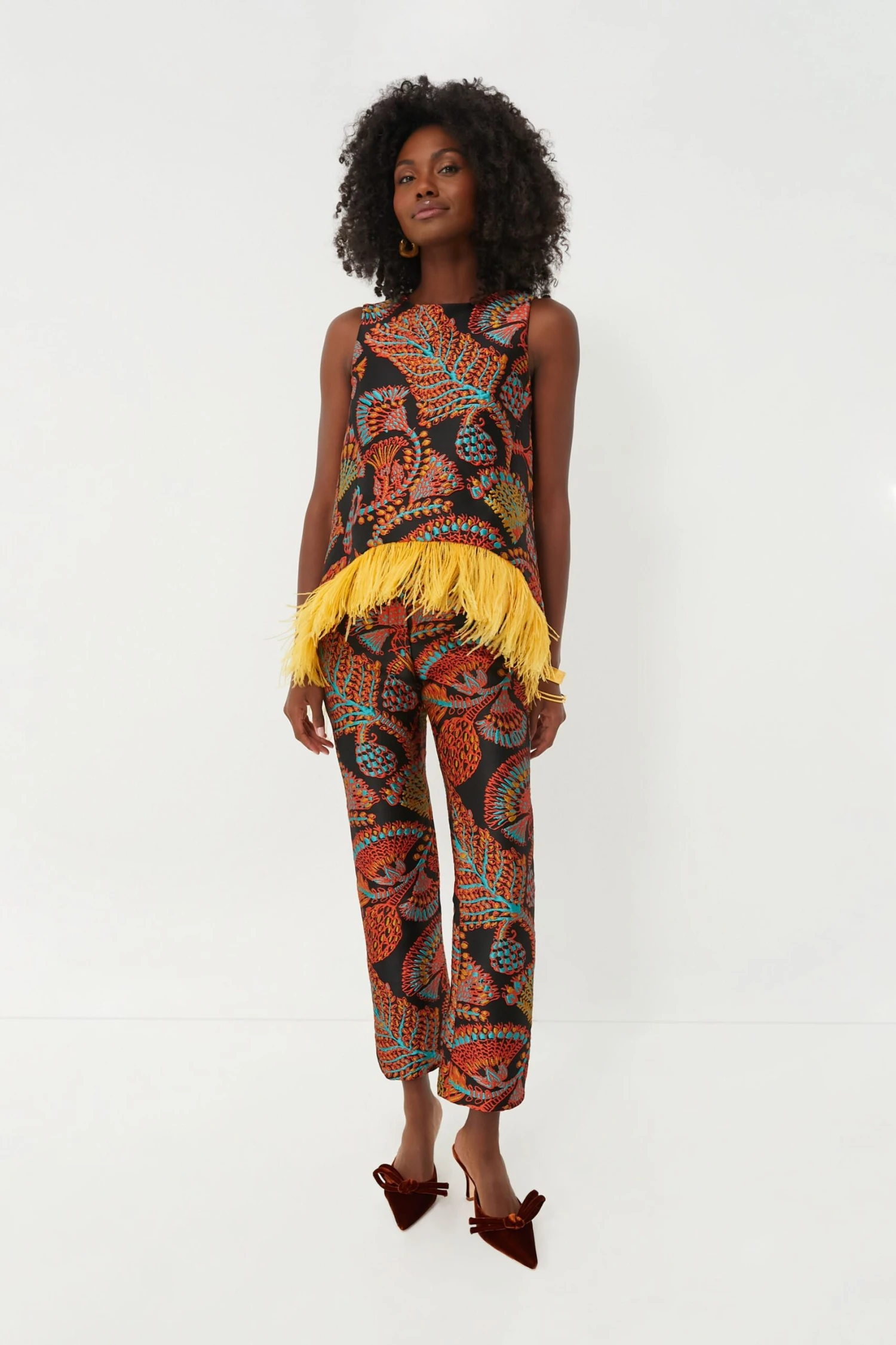 The Sicomore La Scala Top wins the gold in our books! Prime for weddings, sparkling soirees, and beyond, this alluring trapeze silhouette is crafted from a shimmering jacquard fabric and trimmed with a fabulous ostrich feather hem that brings the drama. Style with the matching 24/7 Pants for a cool-girl-coordinating look, or style with denim and your best heels to hit the dancefloor.Â