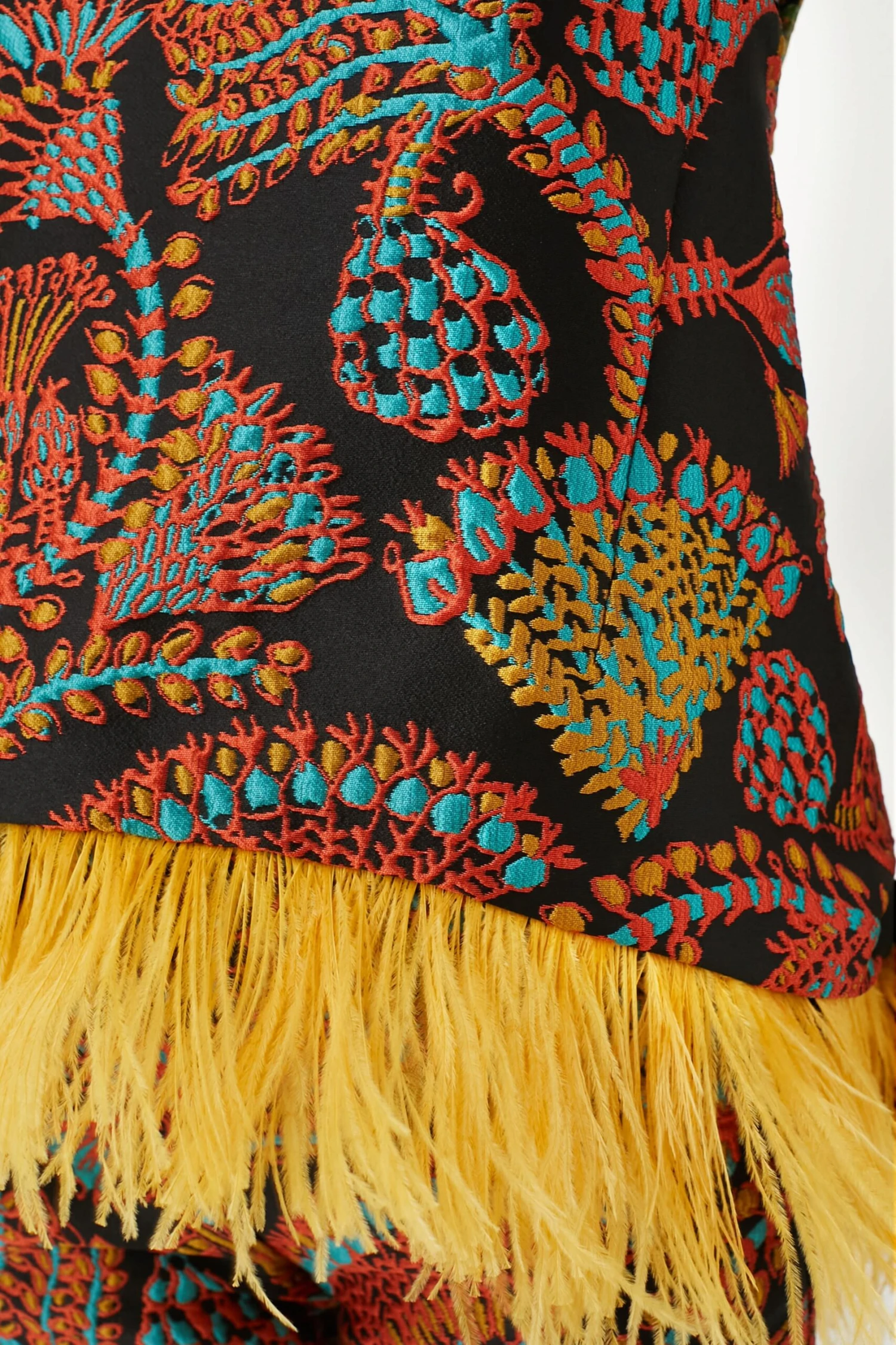 - Ostrich feather trimmed hem