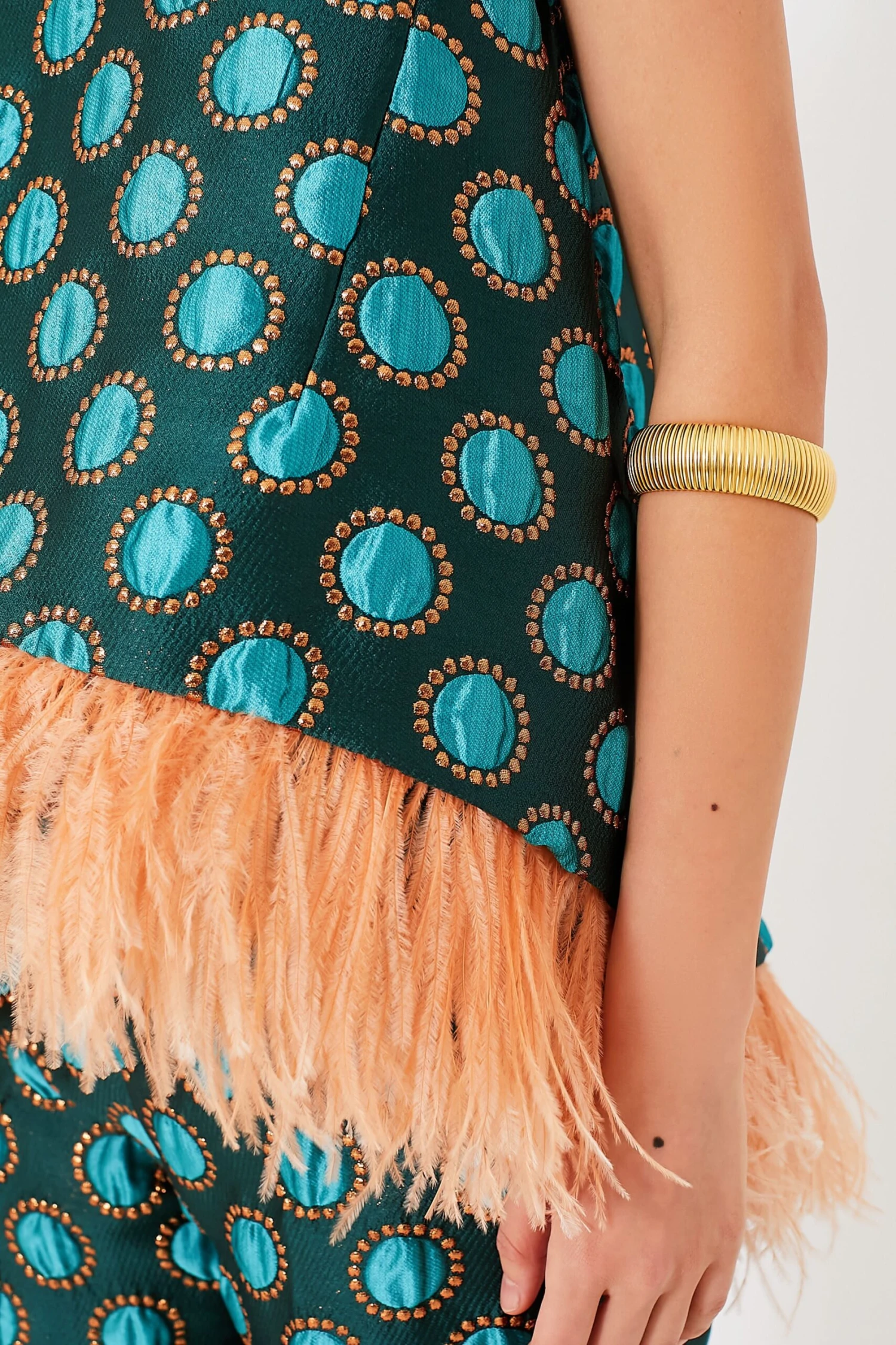 The Winter Sun La Scala Top wins the gold in our books! Prime for cocktail parties, elevated events, and beyond, this alluring silhouette is crafted from a shimmering jacquard fabric and trimmed with a fabulous ostrich feather hem that brings the drama. Style with the matching Hendrix Pants for a cool-girl-coordinating look, or style with a mini skirt and your best heels to hit the dancefloor.