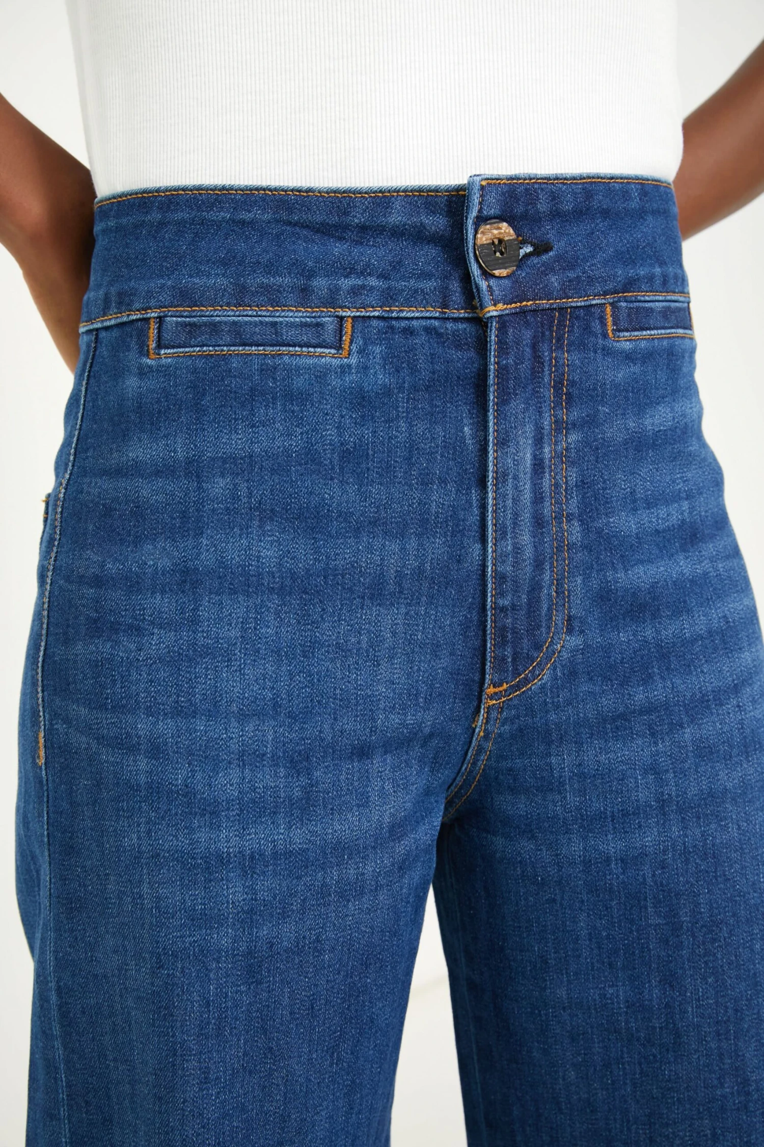 - Zip fly with button closure