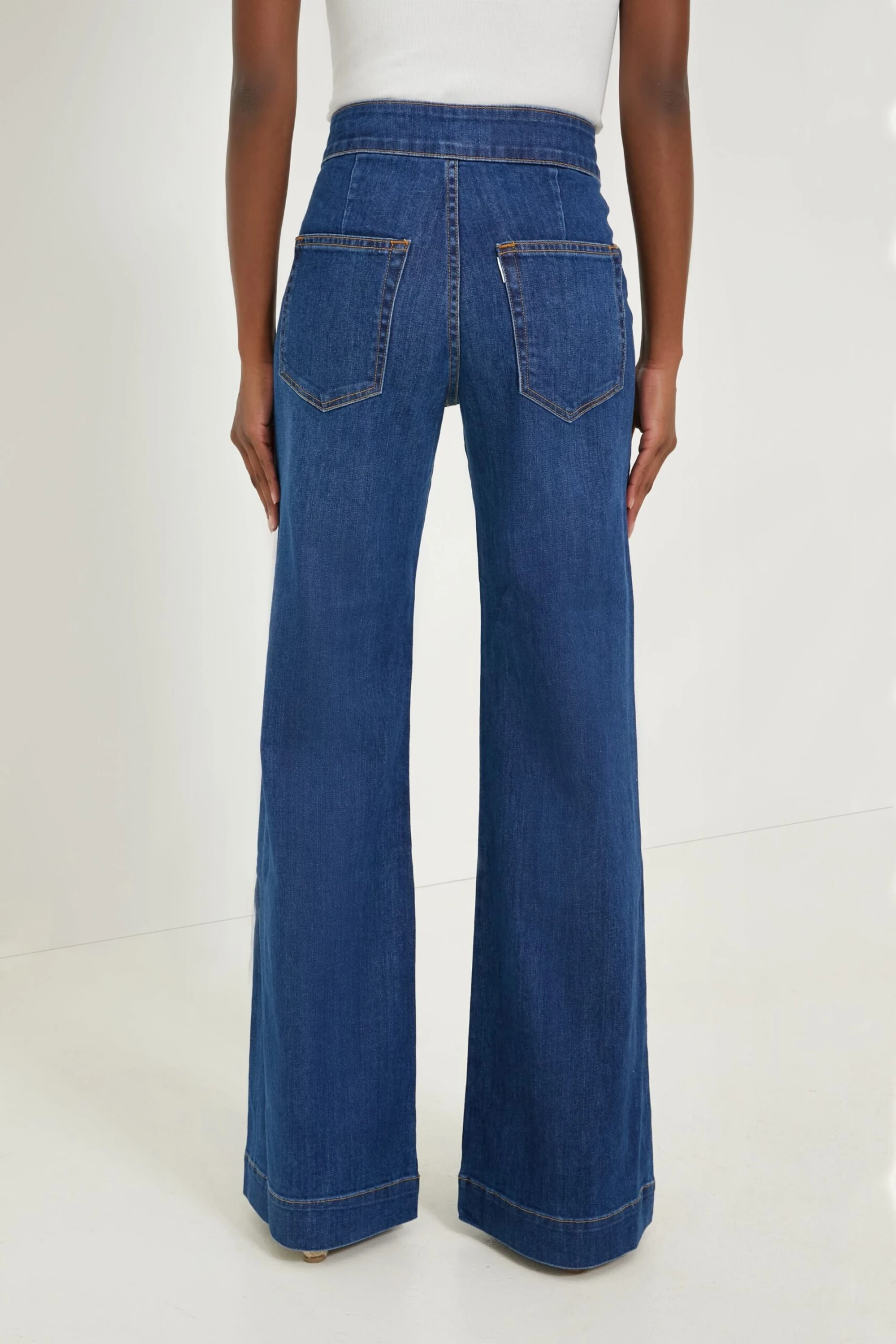 The retro-inspired Mercury Brighton Pant has us in a denim daze! Beautifully crafted from lightweight stretch denim, these high rise jeans are funky and fun. Featuring a flattering slim fit through the thighs and wide-leg cut, these bottoms pair perfectly with any top. Style with a graphic tee and boots for a festival, or dress it up with a blouse, gold jewelry, and pumps for a desk-to-drinks look.Â