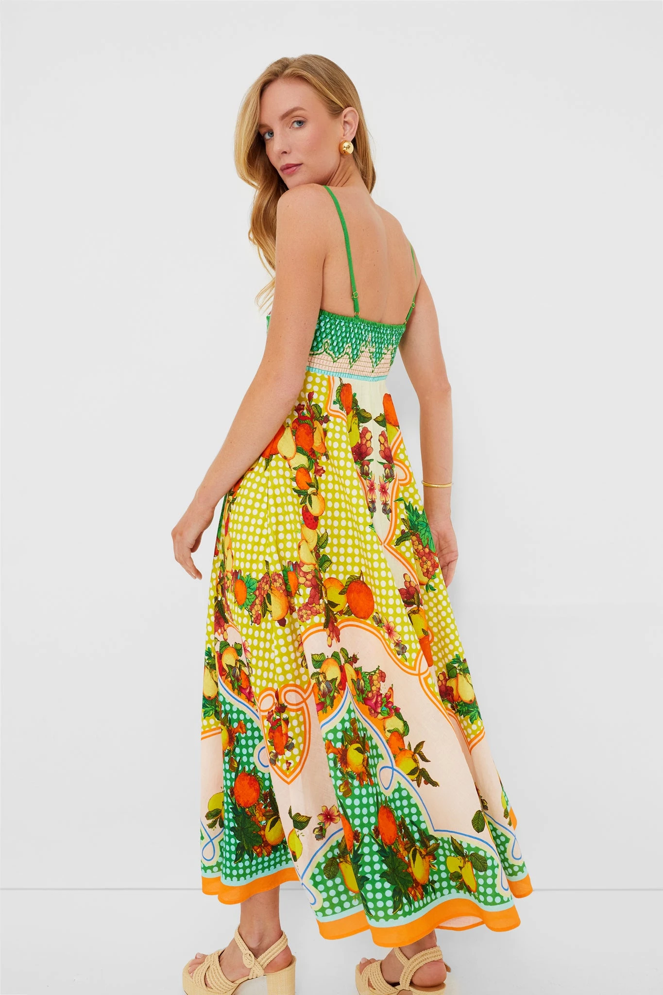 The Multi Lemonis Sundress is here for sunshine and good times! Boasting a Art Deco style floral print, this midi features an elegant square neckline, shirred back panel, side pockets which instantly make us love it more, and a twirl-worthy full skirt. Seamlessly transitions from day to night we love wearing this midi with espadrilles and a sunny hat for an easy daytime look and switch to heels and statement jewelry for a night of cocktails and celebration with friends.