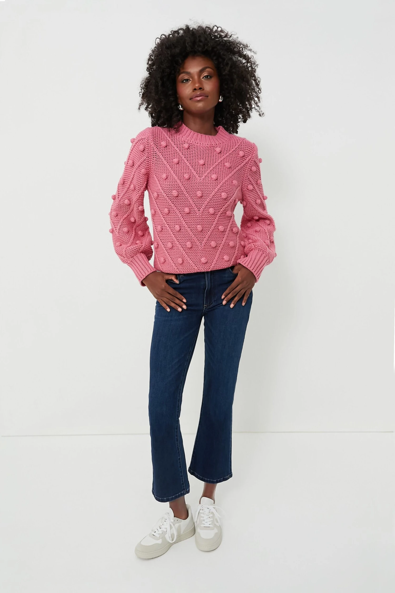 Bright bubblegum hue, playful pompoms, oversized silhouette…what’s not to love about the Punchy Pink PomPom Lainey Sweater? Perfect for when you want to add a pop of color to your day, we’re pairing this pullover with our go-to jeans and a crossbody for a casual yet chic ensemble that’s sure to brighten your mood.
