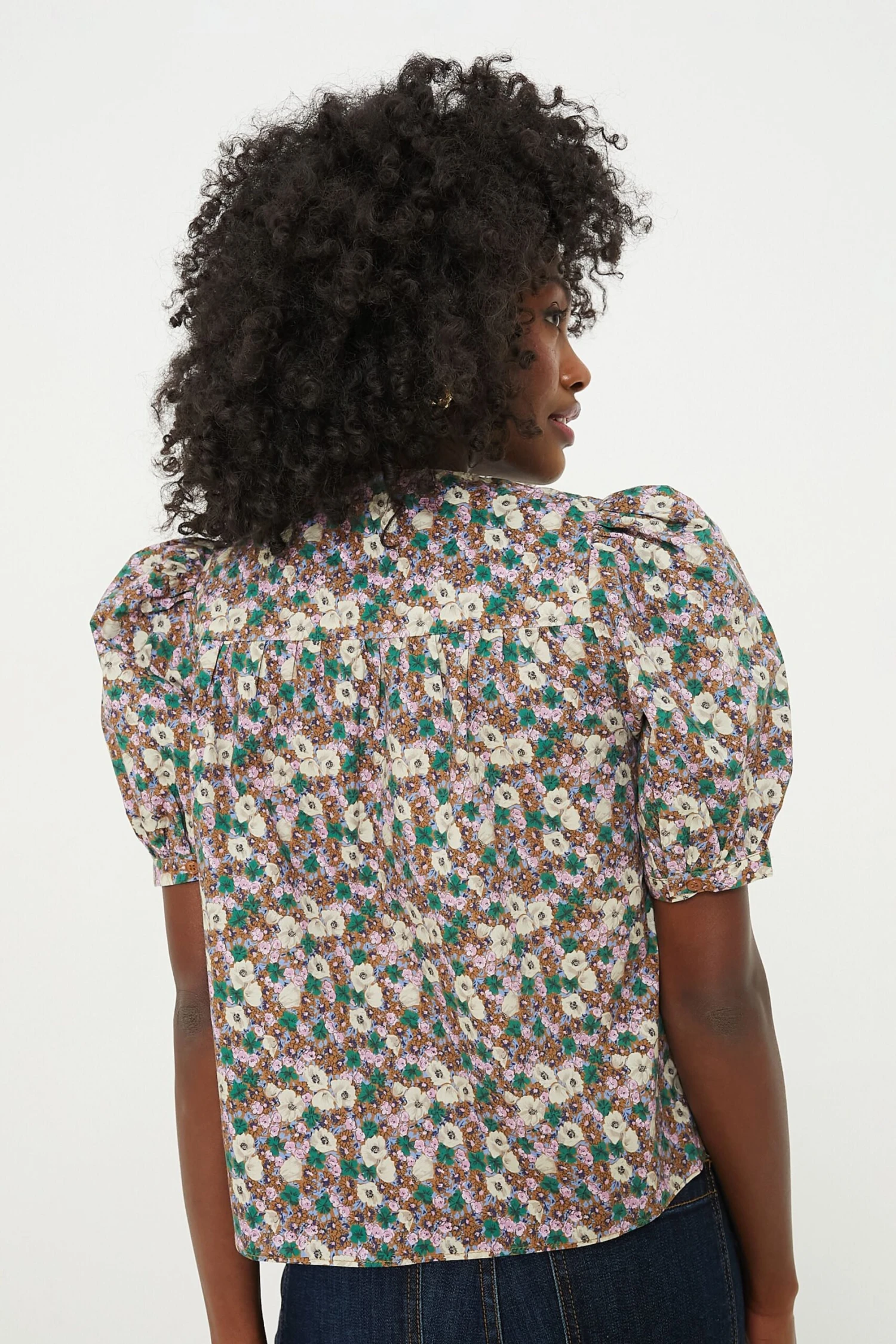 The Purple Multi Floral Petunia Blouse is a perfect style to carry you from weekdays to weekends. A straight silhouette that boasts short sleeves with shirring around the shoulders, a V-neck with a self-tie, and a ditsy floral pattern, this feminine beauty can easily be dressed up or down. Pair with denim shorts and sneakers for a casual lunch date, or with dark denim and ballet flats for work meetings.
