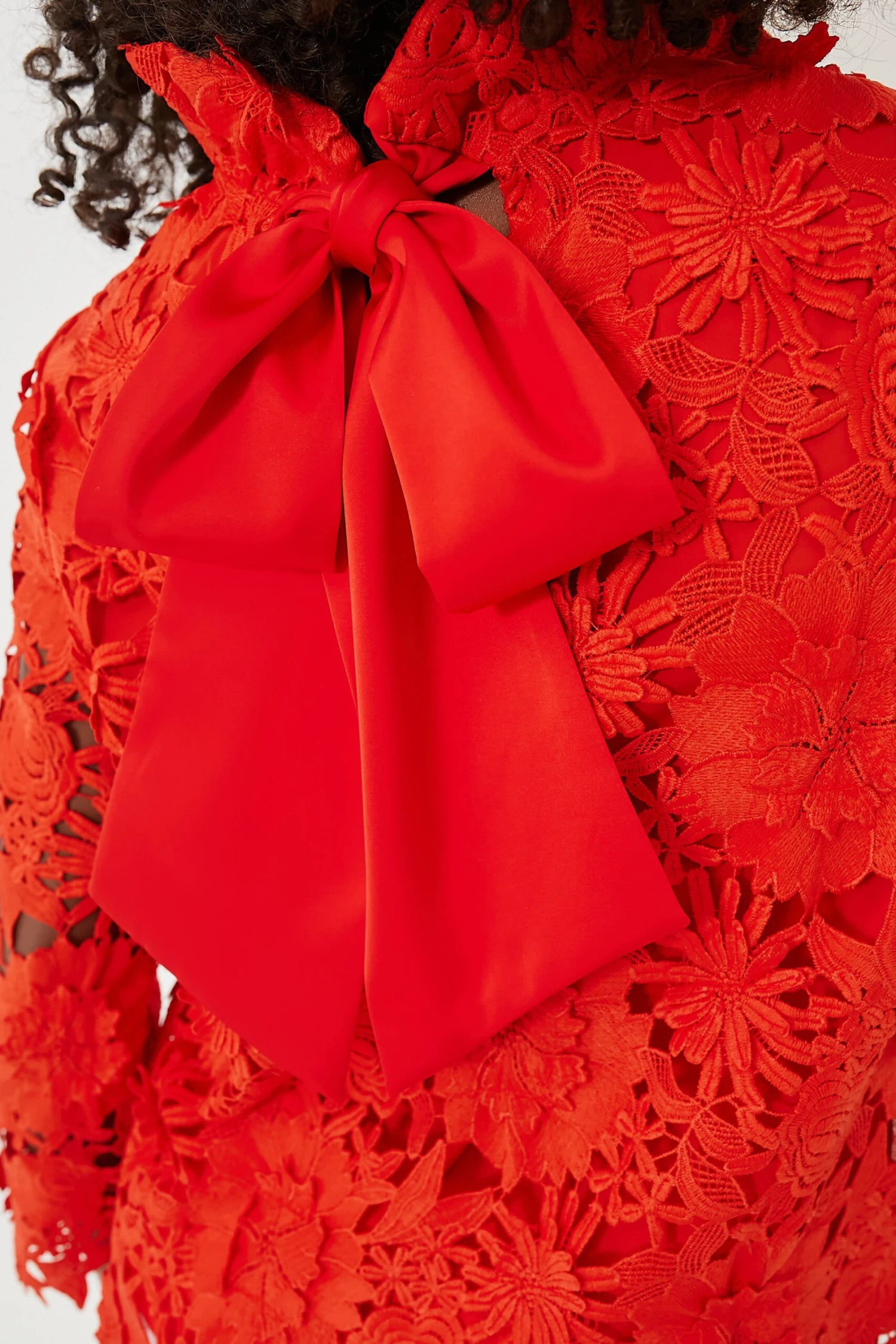A Tuckernuck style staple, the Faye is back and better than ever. Our design team spent months perfecting and testing our signature stand collar to get it just right. As Marvin Gaye once said: “Ain’t no collar high enough,” so bring on the ruffles and drama! Updated in a beautiful guipure lace fabric, this swing shape blouse reminds us of our favorite mod silhouettes from the 60s and 70s. Ready for dinner celebrations with family, cocktail parties with friends, and every social event on your calendar, the occasions are endless for this bow tie-back top!