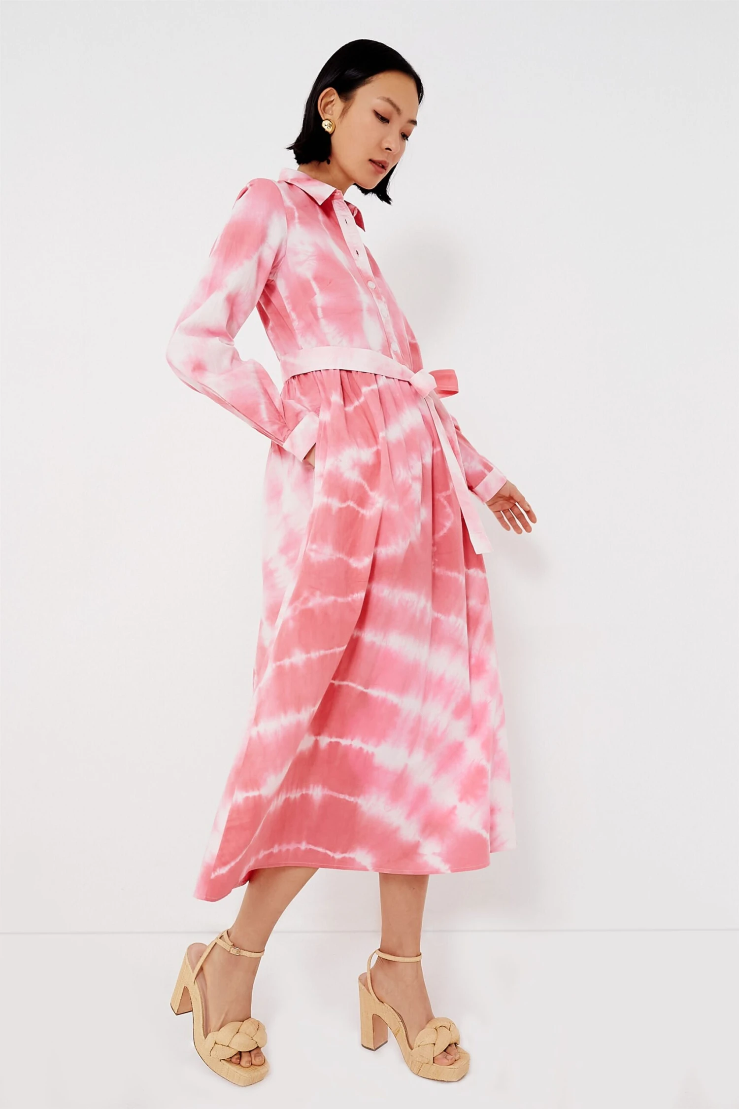 A classic shirtdress silhouette with a twist, the Solar Daffodil Dress combines everyday tailoring with feminine details. Cut from smooth cotton sateen, this midi features a hand tie dyed pattern, front button placket, elasticated waist with self-tie belt and finished with convenient pockets on the sides. Super elegant, you can style from brunch to dinner year round. Pair with sneakers and sunnies for an easy daytime look and switch to sandals and statement jewelry for a night out with friends.