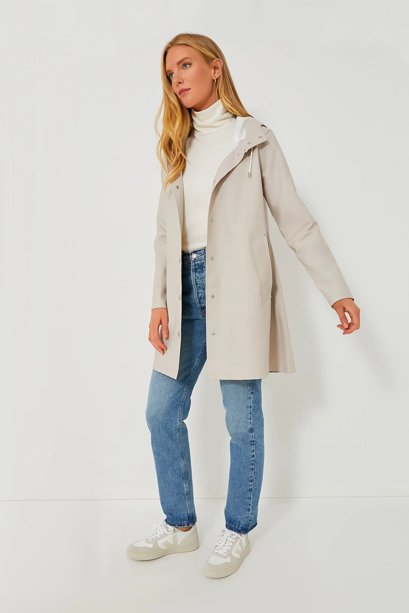 With feminine style in an A-line silhouette, the Light Sand Mosebacke Jacket is still your go-to, year-round raincoat. With 100% rainproof rubberized cotton, double-welded seams, and snap metal closures, you’ll be protected from the elements without sacrificing style. A drawstring hood, front welt pockets, and under-arm eyelets allow for ventilation so you won’t overheat. In a relaxed fit with a minimalist look, you’ll constantly be grabbing for this functional number all season long.
