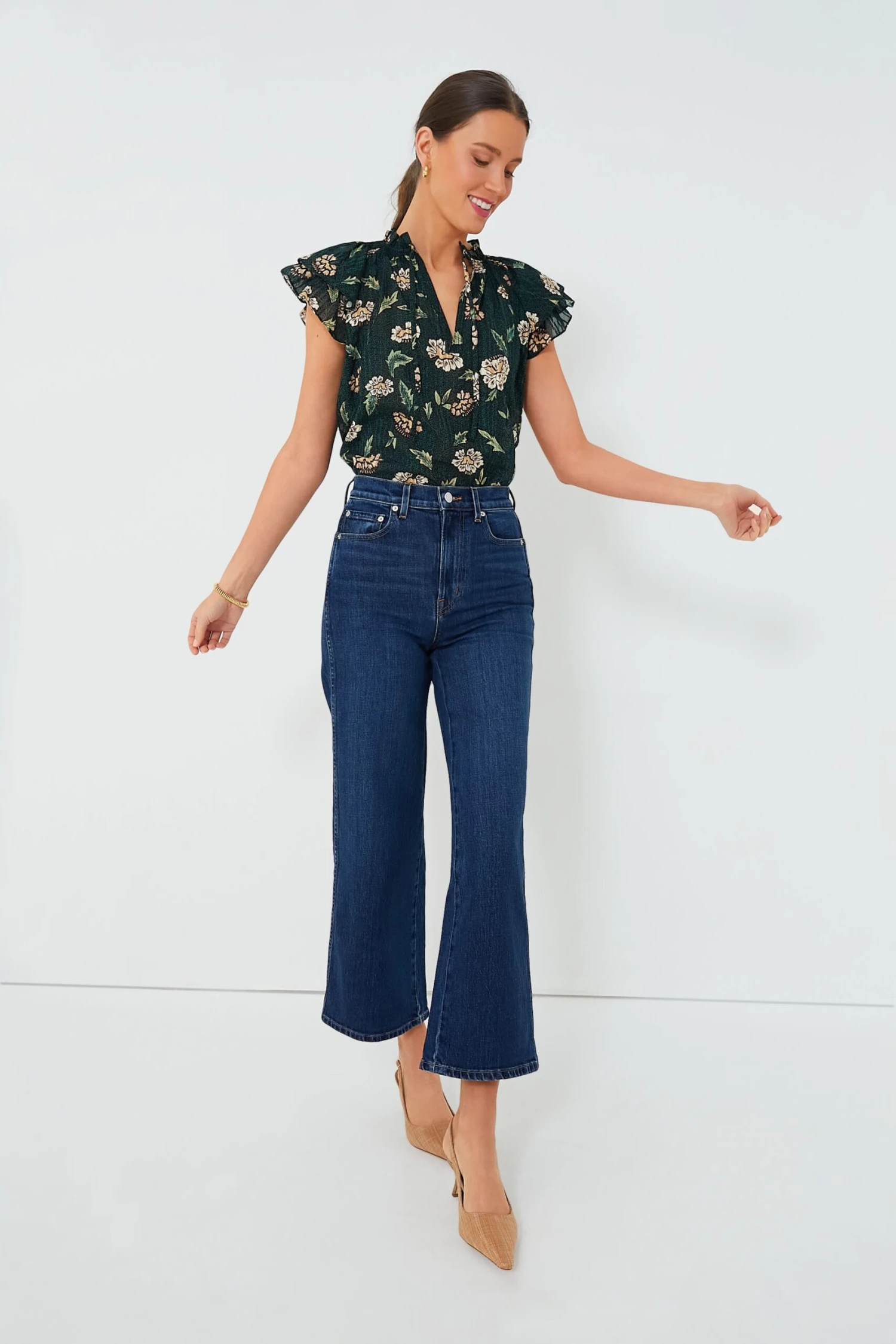 Say hello to Balsam Annie Top! Boho-chic style at its finest, this stunning batik floral printed piece gets its elegance and charm from that rich forest green hue, ruffled collar, and fluttery sleeves. Perfect for year-round wear thanks to its blend of cotton and viscose, we love to style this darling number with white denim and sandals as much as we love to style it with dark wash jeans and booties.
