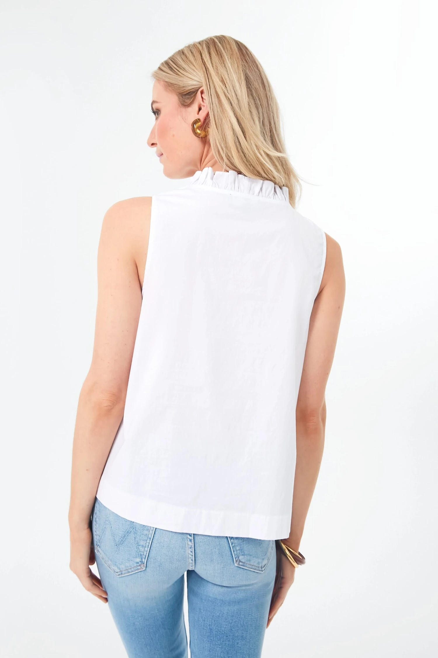 Spring is coming which means florals and fresh whites, queue the Veronica Top. Unfussy and feminine, this blouse features subtle ruffle detailing along the V-neckline for a bit of flirty flair while keeping it sophisticated. We are wearing this sleeveless stunner with denim, trousers, mini skirts (must we go on?) from work to play with ease and style.Â