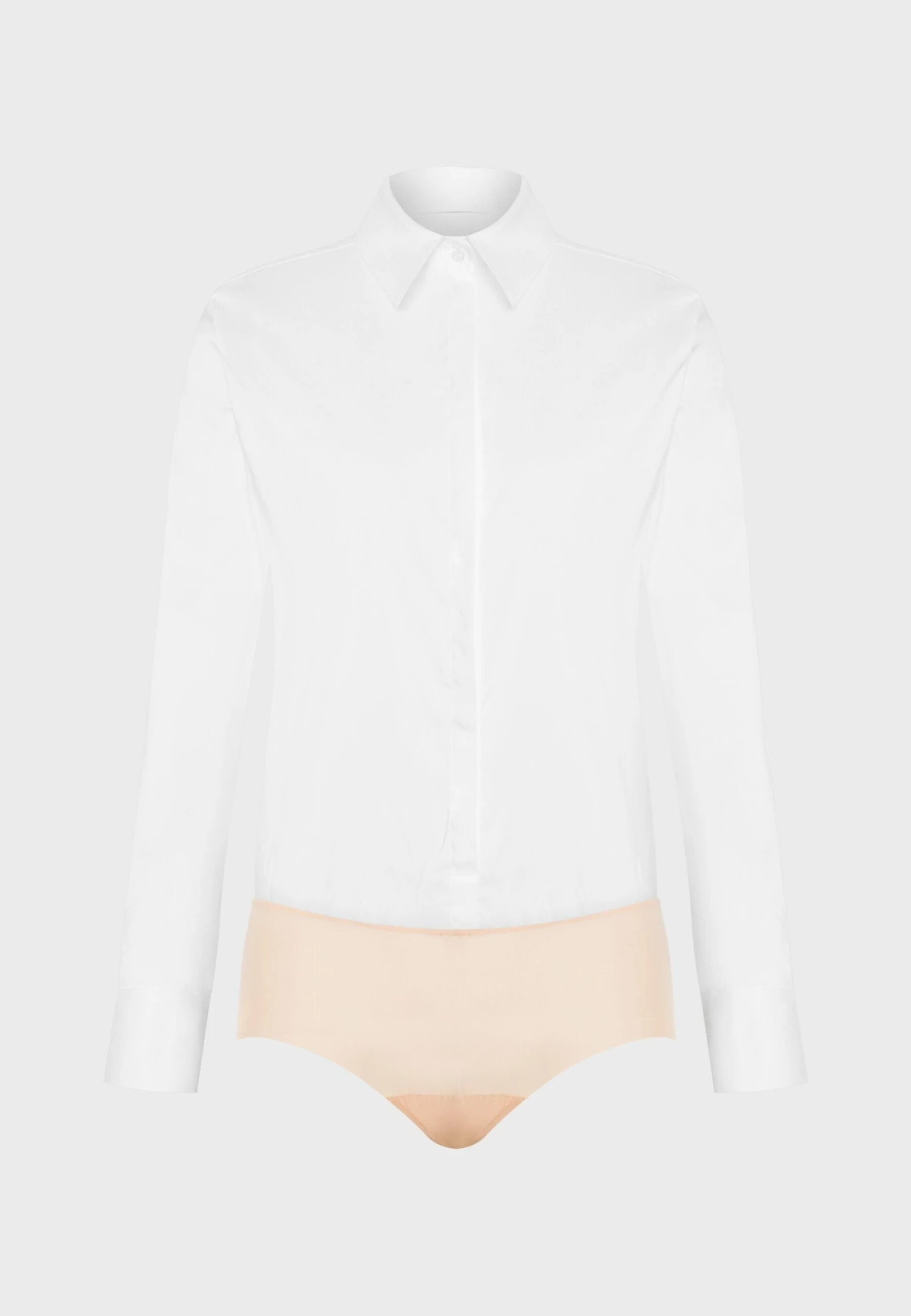 The White London Effect Panty Bodysuit combines a classic white blouse with an integrated bodysuit to create a real must-have item. Perfect for when you want to tuck your button down into your jeans or trousers but don’t want the bunched up, bulky feel, this one-piece will be your go-to styling silhouette. Complete with a polished collar and a concealed button front placket, this ladylike piece definitely belongs in your closet!
